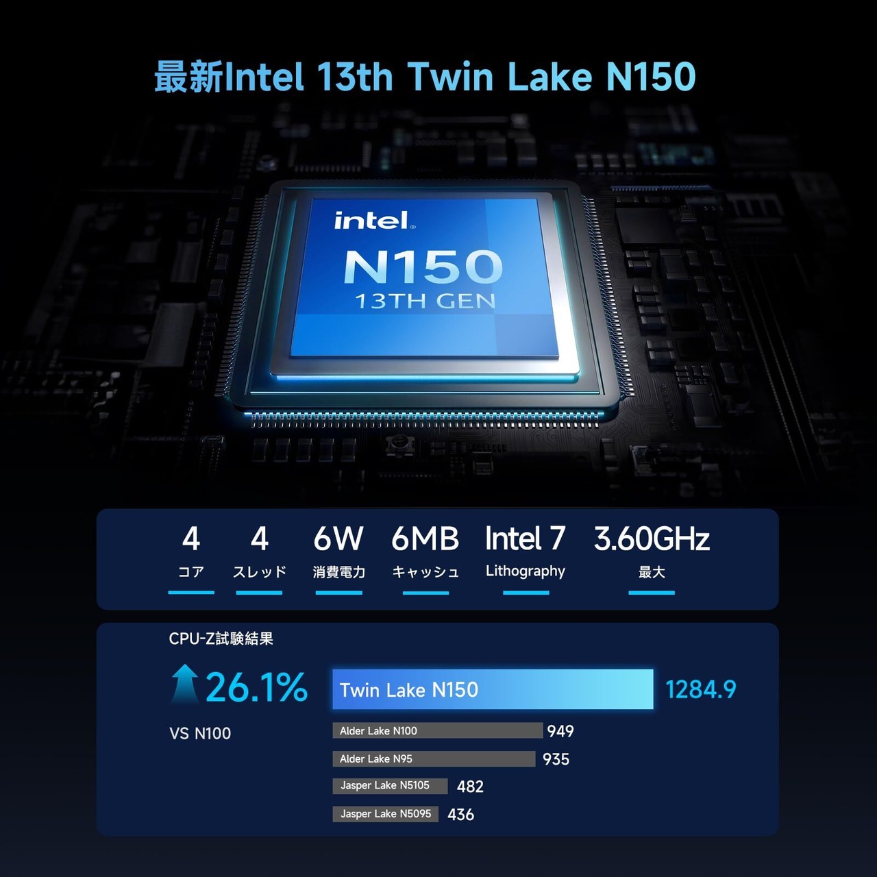 【Intel-N150登場】 Intel N150プロセッサーを搭載。16GB DDR4 1TB。高性能で、日常的なオフィスワーク、ウェブブラウジング、ビデオ再生などのニーズに簡単に対応できます。複数のアプリケーションを同時に実行しても、スムーズで効率的に動作し、理想的な使用体験を提供します。大容量メモリと高速ストレージ。16GB DDR4 SO-DIMMメモリ(2666MHz)を内蔵し、迅速なレスポンスを確保し、マルチタスク処理をサポート。複数のプログラムを効率的に処理できます。また、1TB SSDストレージを搭載し、ファイルのアクセス速度が速く、大容量の保存スペースを提供し、遅延を減らし、全体的なパフォーマンスと使用の流暢さを向上させます。