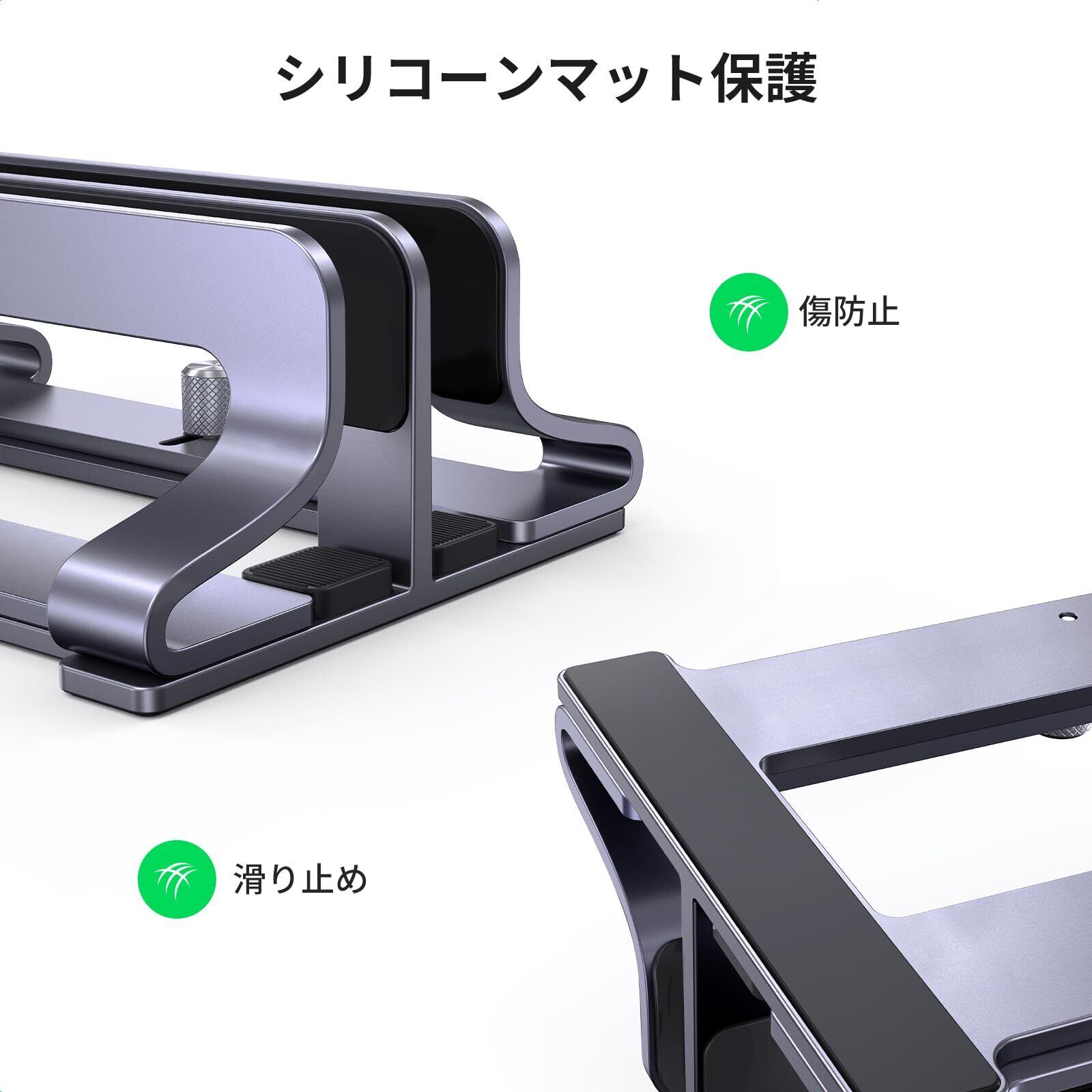 UGREEN ノートパソコンスタンド 縦型 2台収納 pcスタンド 縦置き 収納 2スロット 幅調整可能 2槽 アルミ合金製 シリコーンゴム傷防止 15.6インチまで対応 パソコンスタンド 全機種対応MacBook Pro Surface iPad HP Lenovo ThinkPad など
