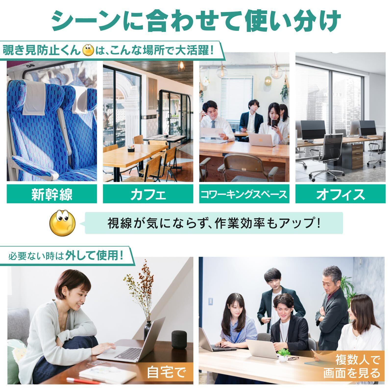 ▶▶▶【視野角度60°】:正面からはいつも通り快適に見え、左右約30°からは真っ黒に見えるので人の目を気にすることなく作業に集中できます。新幹線・カフェ・コワーキングスペース・オフィスなどでの作業効率アップにお役立てください。※低品質フィルターは正面からも見えにくいのでご注意ください。▶▶▶【リバーシブル仕様】:グレア(光沢)・アンチグレア(非光沢)のリバーシブル仕様。鮮明な映像を楽しみたい場合はグレア(光沢)、反射防止効果を重視する時にはアンチグレア(非光沢)面をご使用ください。※正面から見た場合の違いです。どちらの面も左右約30°からは真っ黒になります。