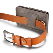 【特価商品】スマホポーチ カラビナ付き ベルト装着 11層カードホルダー スマホ2台収納 本革 スナップボタン式 ウエストバックiPhone SE/6/6s/7/8 など5.2インチ以下の機種対応 縦型(グレー) | BOSSO