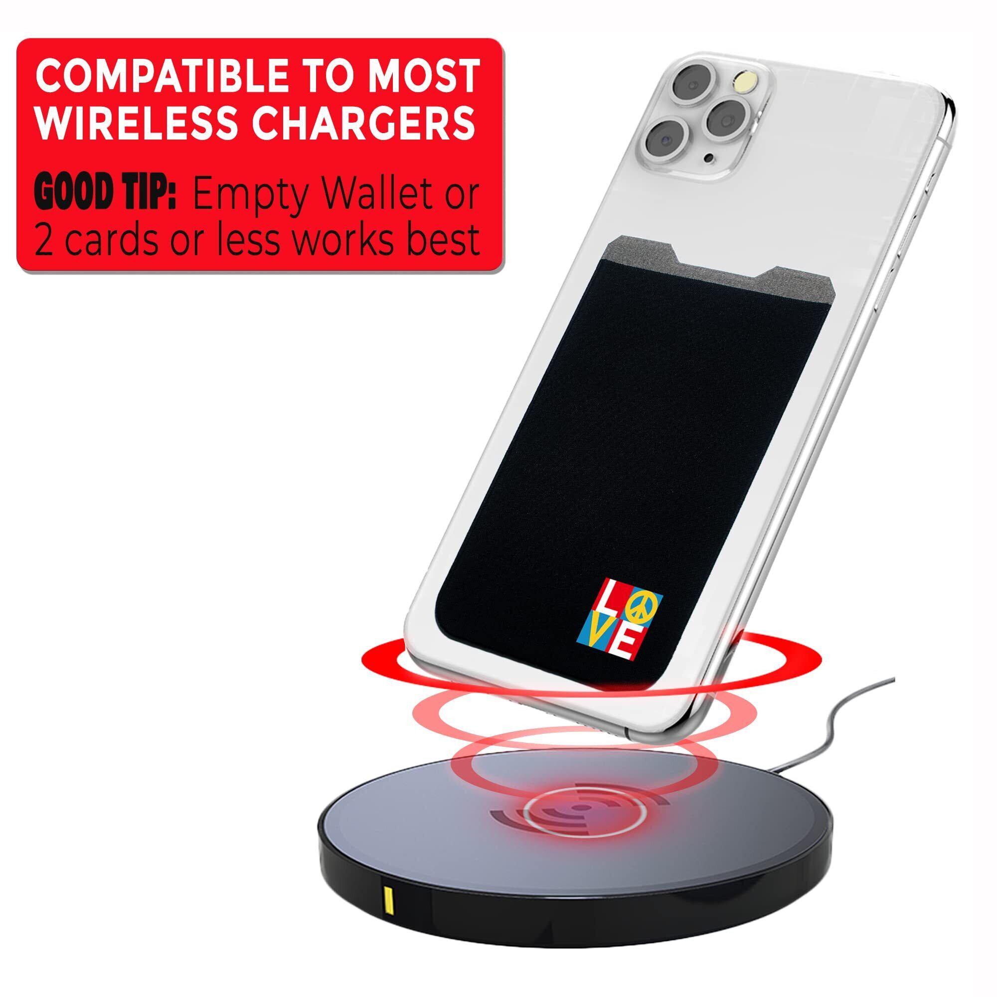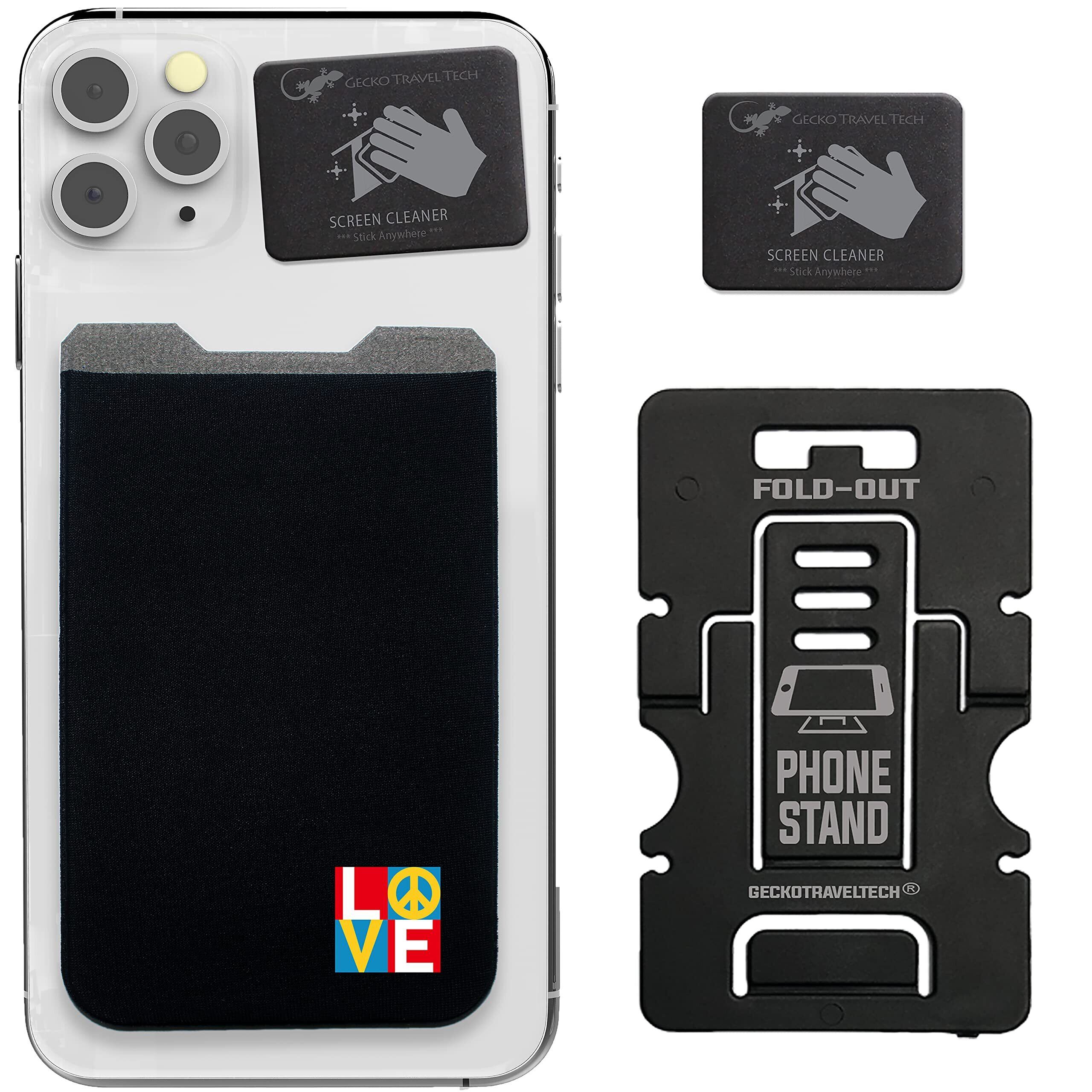 Gecko 携帯電話用ウォレット 黒/白 スマホに貼り付けられるカードケース - スキミング防止機能 - プライバシーを守る大容量ポケット (PEACE LOVE)
