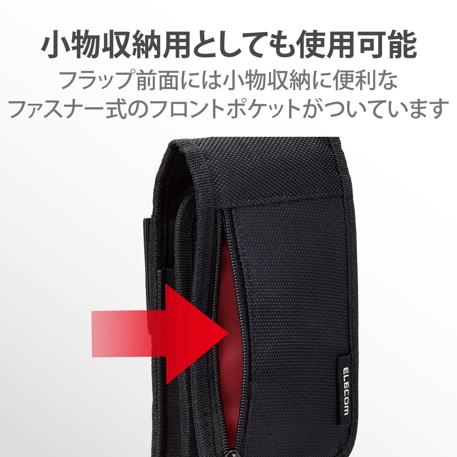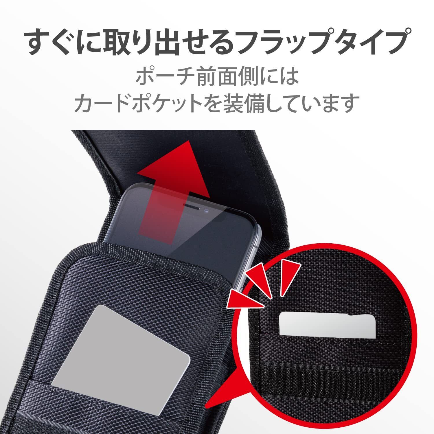 エレコム スマホポーチ 1台収納 Sサイズ 3Way (腰ベルトループ ショルダーベルトループ カラビナフック) フロントポケット付 カードポケット付 ブラック 【iPhone 16 / 16e シリーズ 対応検証済】 P-04CCBK