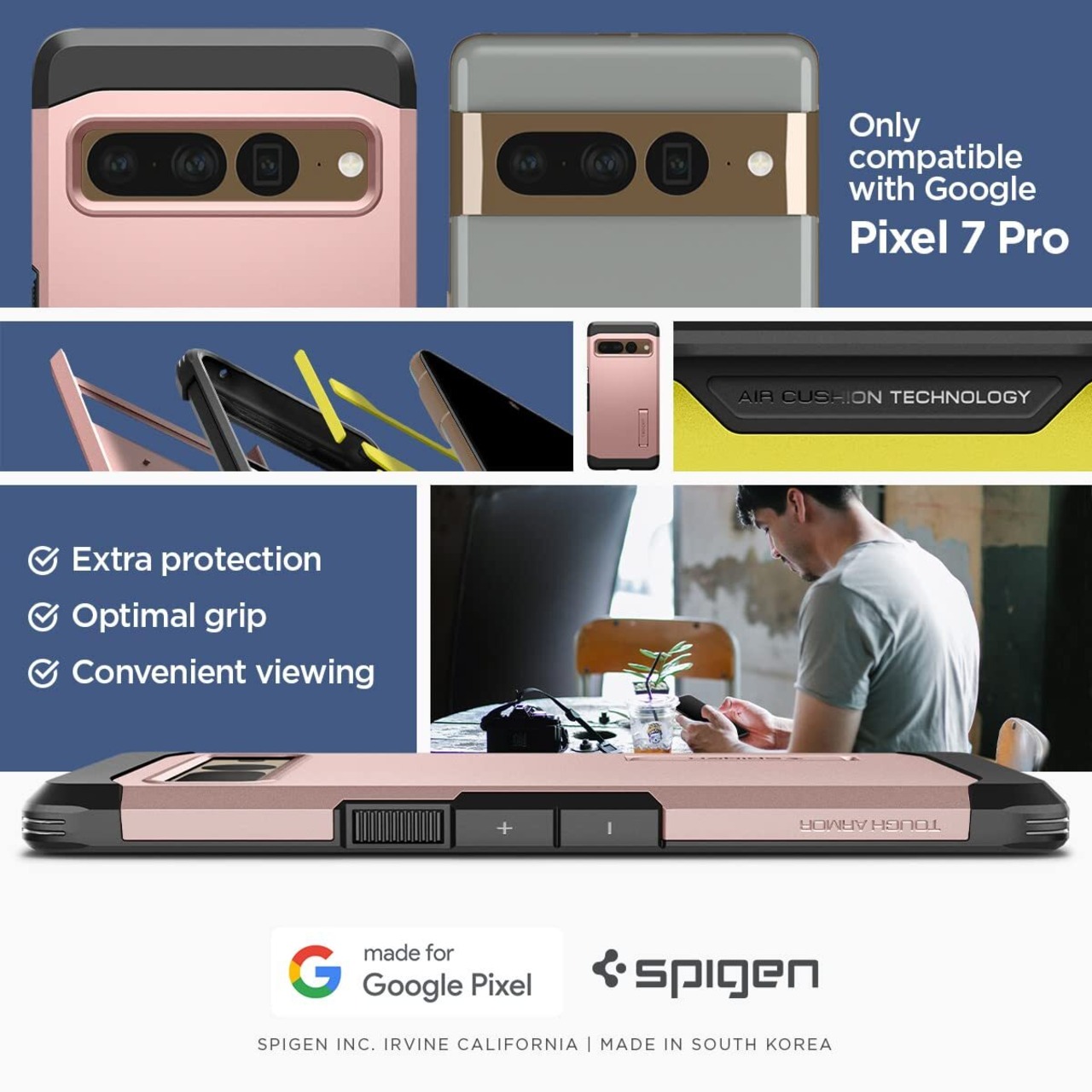 Spigen Pixel7 Pro ケース 耐衝撃 スタンド付き 米軍MIL規格取得 三層構造 スマホスタンド カメラ保護 傷防止 衝撃 吸収 Qi充電 ワイヤレス充電 タフ・アーマー ACS04730 (ローズ・ゴールド)