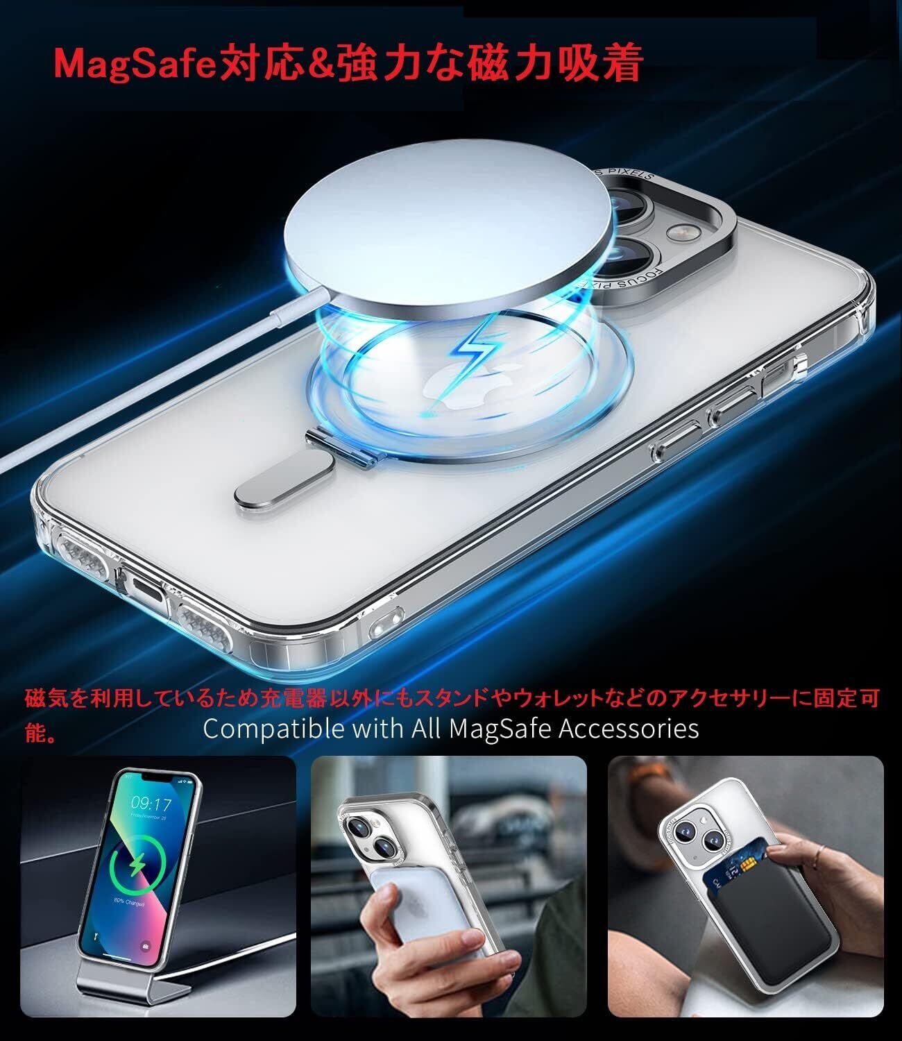 【新春セール】iPhone 14 / 13 用 ケース MagSafe対応【Magsafeスタンド一体型・ストラップ1種付き】アイフォン13 カバーアイフォン14スタンド機能 縦横両対応 HILEGENER スマホケース 耐衝撃 カメラレンズ保護 あいほん14 透明 マット感 マグネット搭載 隠しスタンド ケース ワイアレス充電 ストラップホール付き iPhone13/14-クリア | BOSSO