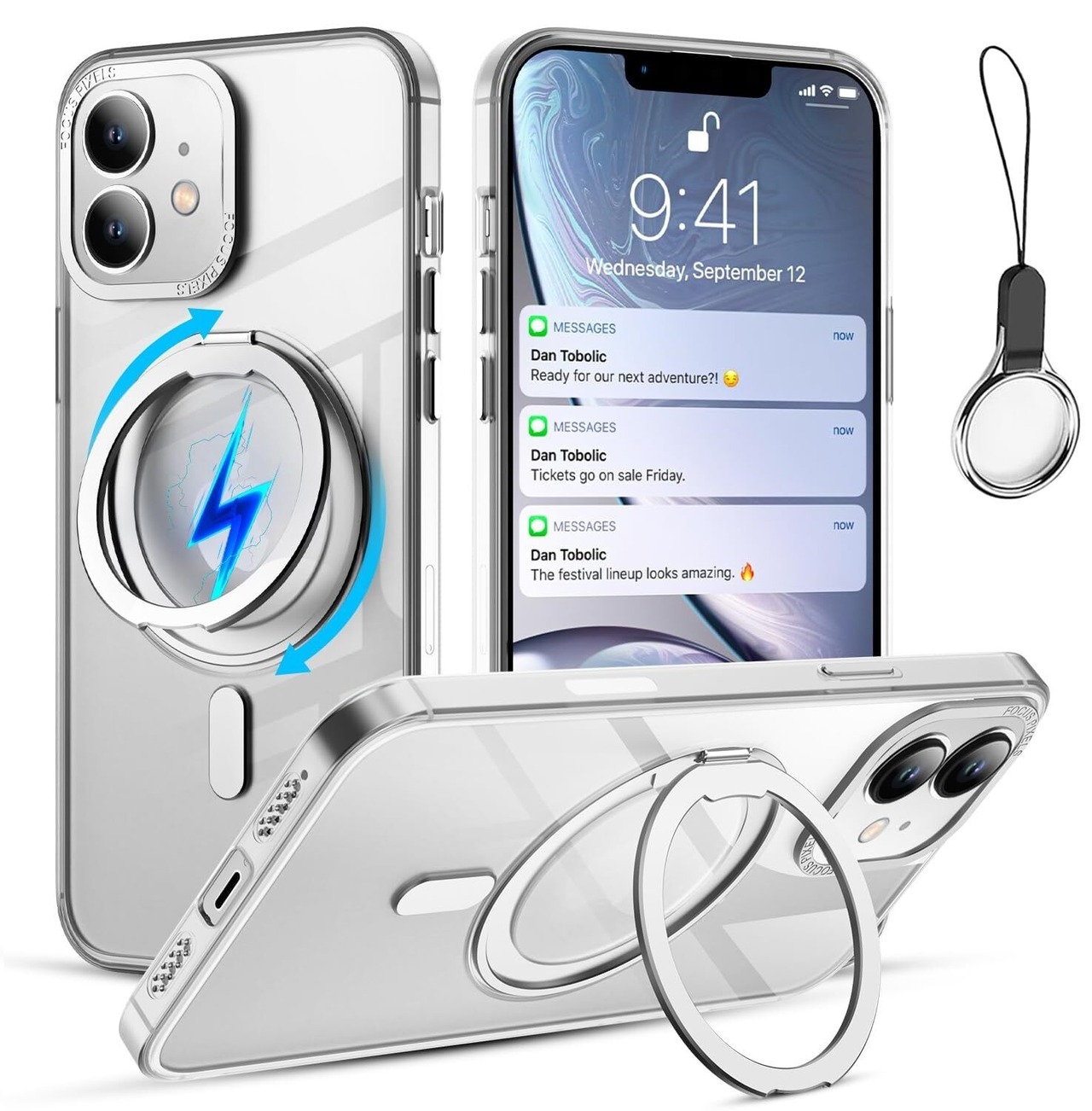 【新着商品】iPhone 14 Plus/14+ 6.7用 ケース Magsafe対応【360°回転可能な Magsafeリングスタンド ホルダー 一体型・ストラップ1種付き】スタンド機能 縦横両対応 HILEGENERスマホケース 耐衝撃 カメラレンズ保護 あいほん14 Plus/14+ 全透明 マット感 マグネット搭載 隠しスタンド ケース ストラップホール付きアイフォン14 Plus/14+-透明 | BOSSO
