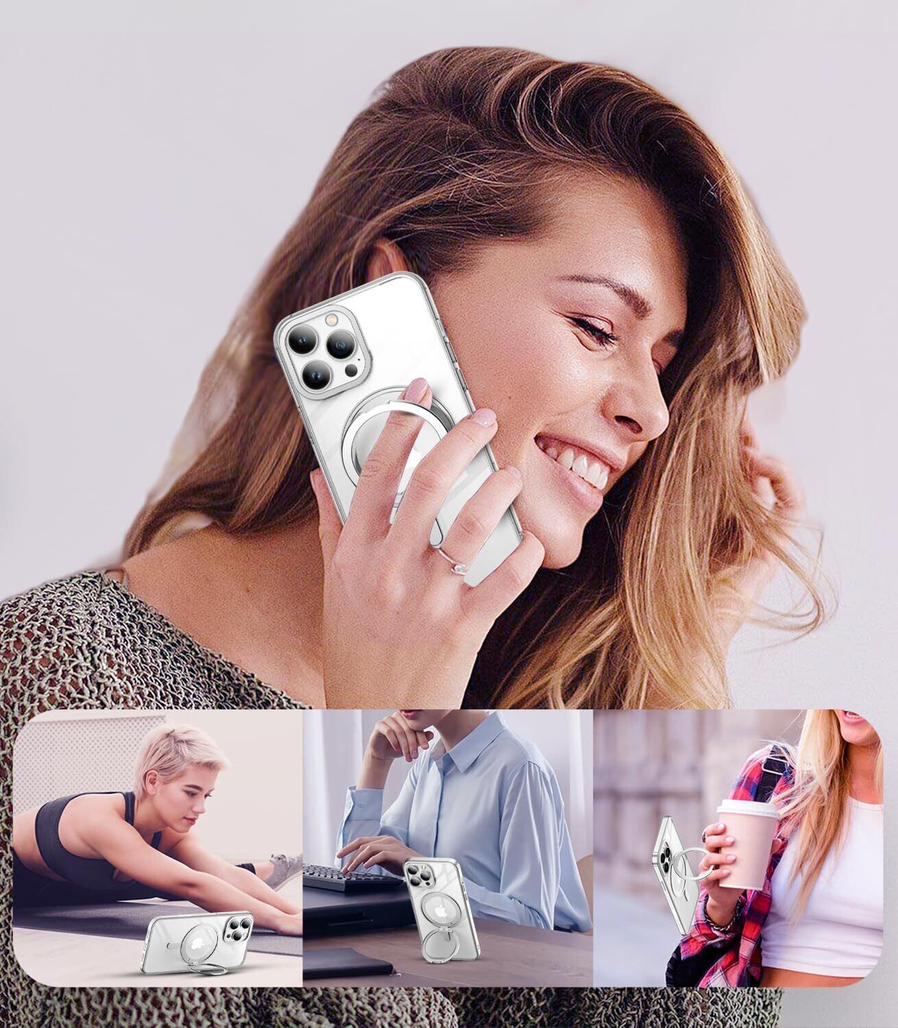 【2023年超世代・360°回転可能な磁気スタンド機能】超世代的な隠しスタンドと強力なマグネットリングの強力な結合により、高い吸着力でガッチリと固定しながら充電ができます。 上下に 120°の多角度自由に調整できます、360° 回転可能なスタンドは革新的に設計されており、縦置きでも横置きでも安定して支えられ。