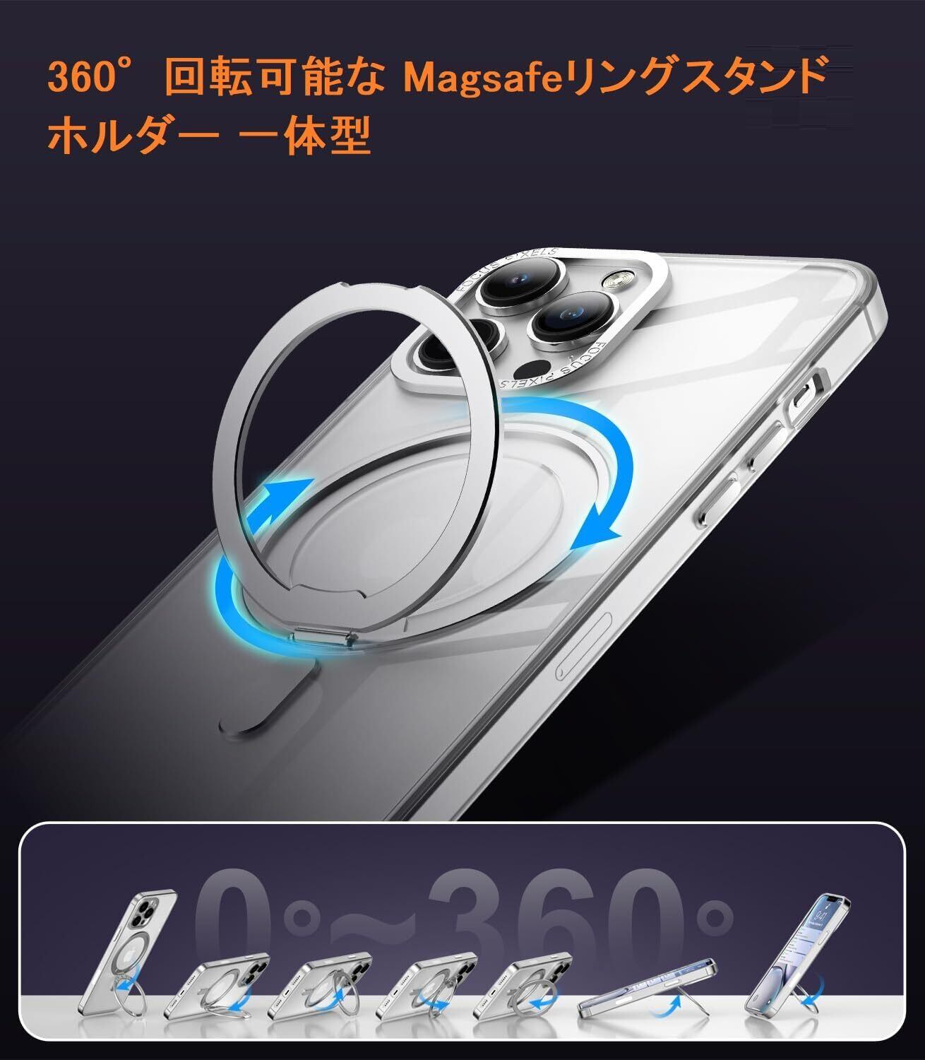 iPhone 14 Plus/14+ 6.7用 ケース Magsafe対応【360°回転可能な Magsafeリングスタンド ホルダー 一体型・ストラップ1種付き】スタンド機能 縦横両対応 HILEGENERスマホケース 耐衝撃 カメラレンズ保護 あいほん14 Plus/14+ 全透明 マット感 マグネット搭載 隠しスタンド ケース ストラップホール付きアイフォン14 Plus/14+-透明