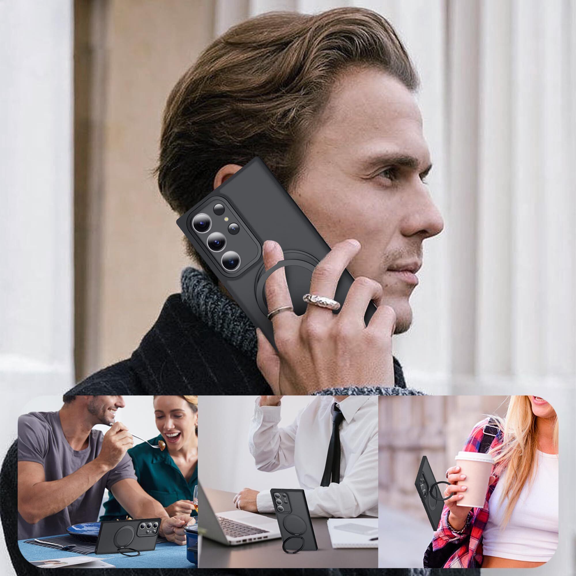 Galaxy S25 Ultra 用 ケース Magsafe対応【360°回転可能な Magsafeリングス・ストラップ1種付き】ギャラクシーS25ウルトラ SC-52E SCG26 5G カバー スタンド機能 縦横両対応 HILEGENER スマホケース 耐衝撃 カメラレンズ保護 半透明 マット感 隠しスタンドケース ストラップホール付き S25 Ultra-ブラック