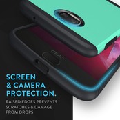 二重構造のデザインは、プレミアム品質のポリカーボネートの外層と強化された熱可塑性ポリウレタン(TPU)のゴム化ジェルスキンを融合し、スリムで軽量、Motorola Moto Z2 Force スマートフォンの形状にフィットするプロテクションを実現しています。