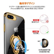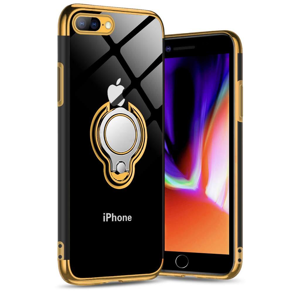 iPhone8Plus ケース iPhone7Plus ケースリング付き 透明 TPU マグネット式 車載ホルダー対応 全面保護 耐衝撃 軽量 薄型 携帯カバー スクラッチ防止 滑り防止 アイフォン7Plus/8Plusケース 5.5インチ専用 一体型(iPhone 7Plus/8Plus ケース ゴールド)