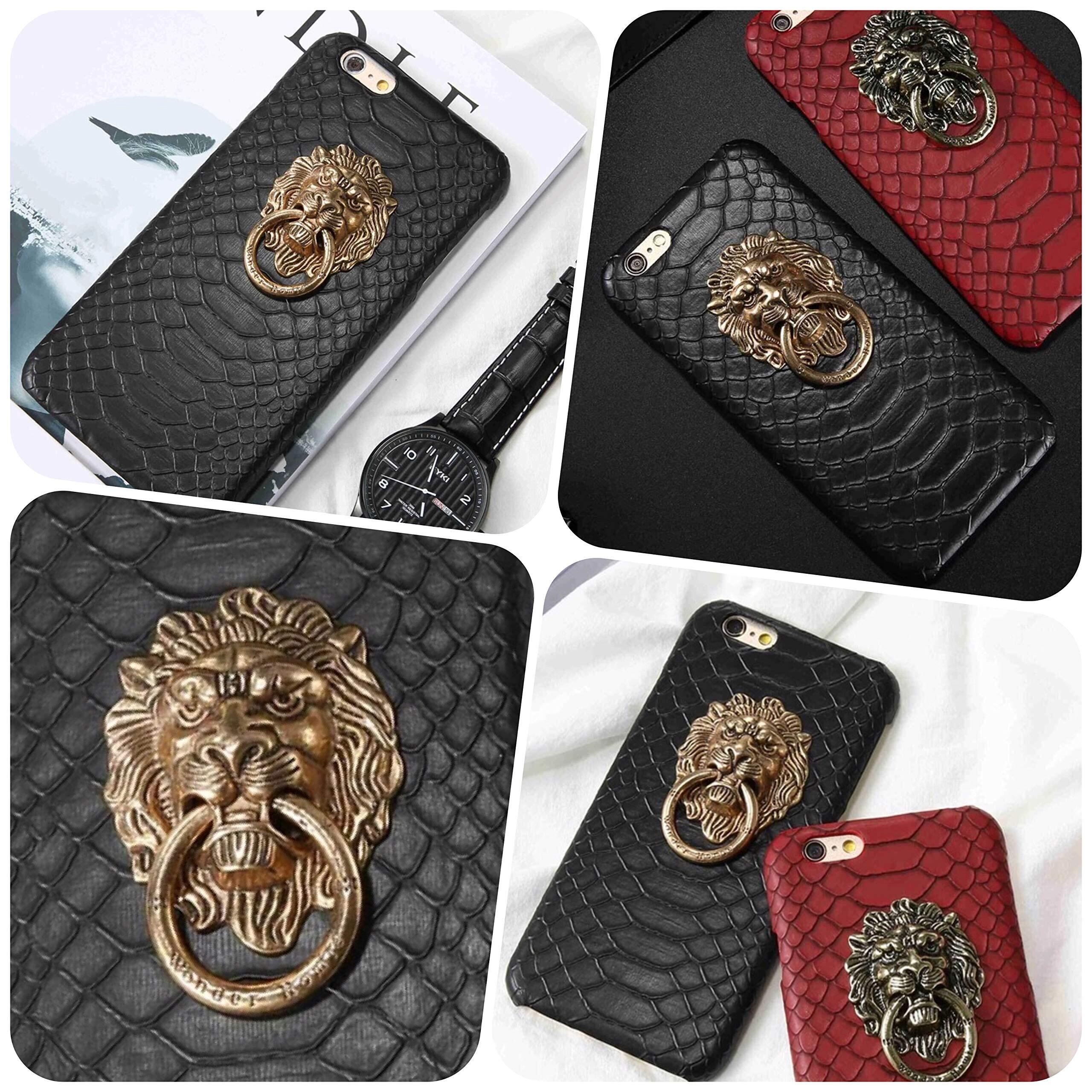 [P-Rize] iPhone7 iPhone8 ケース ライオンリング付き 表面 スネーク ヘビ革風 ユニークスマホケース カバー (ブラック)