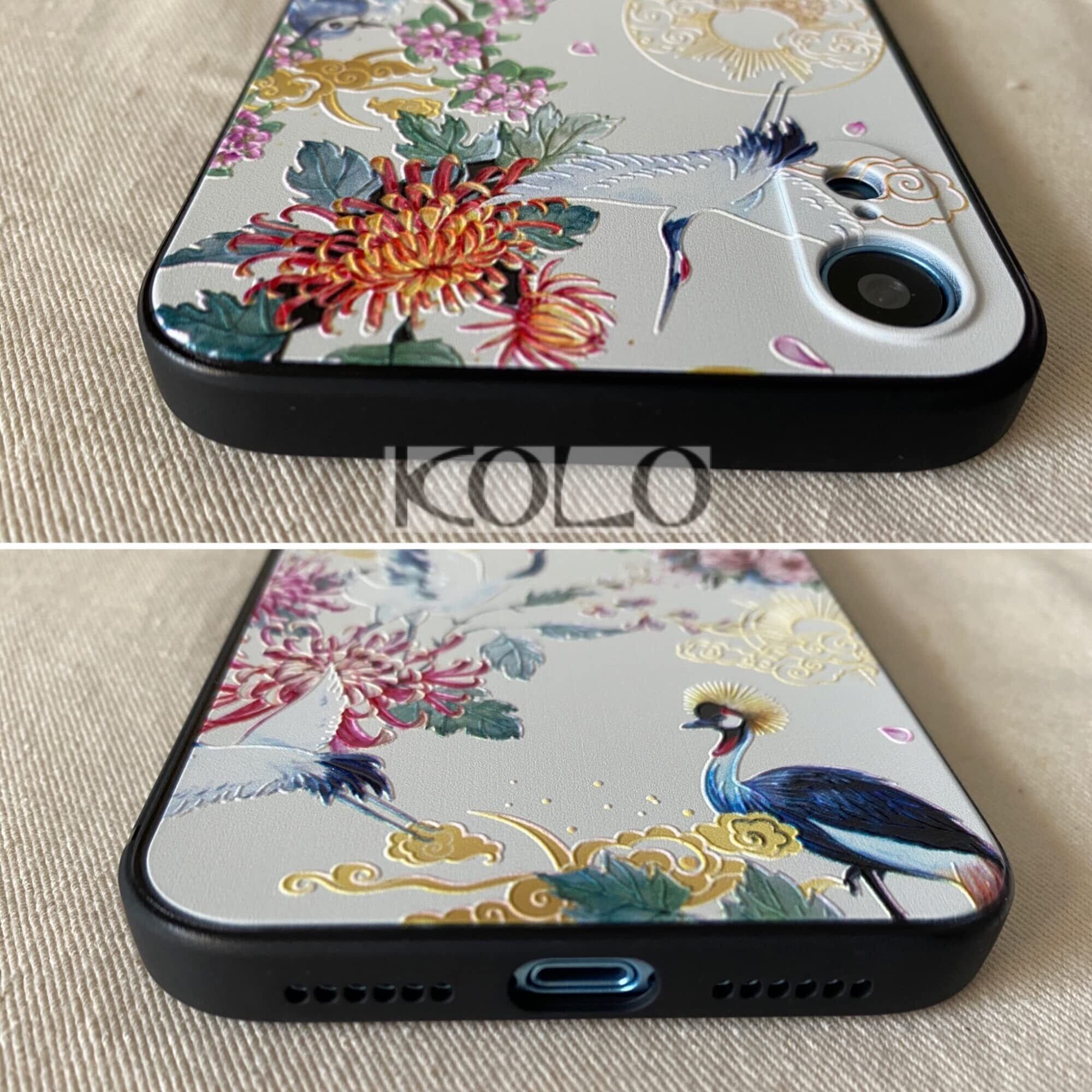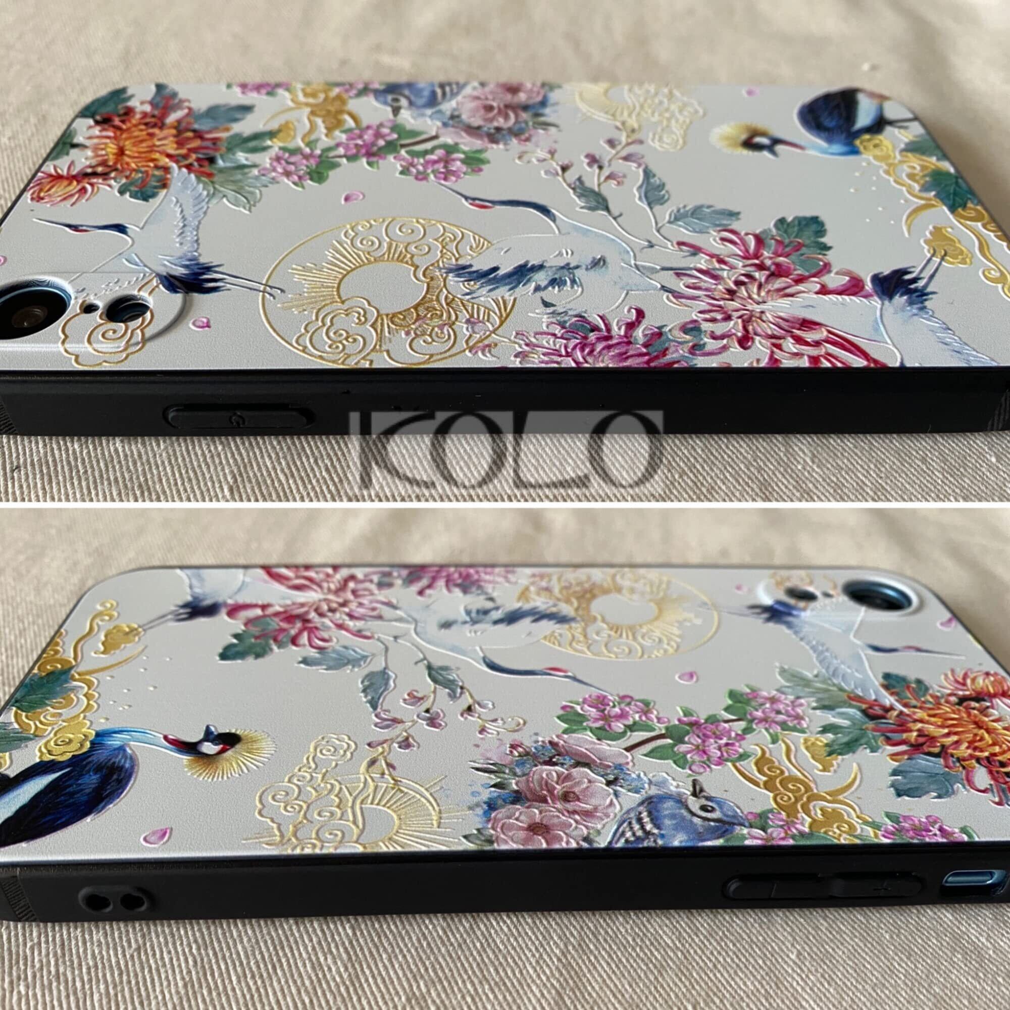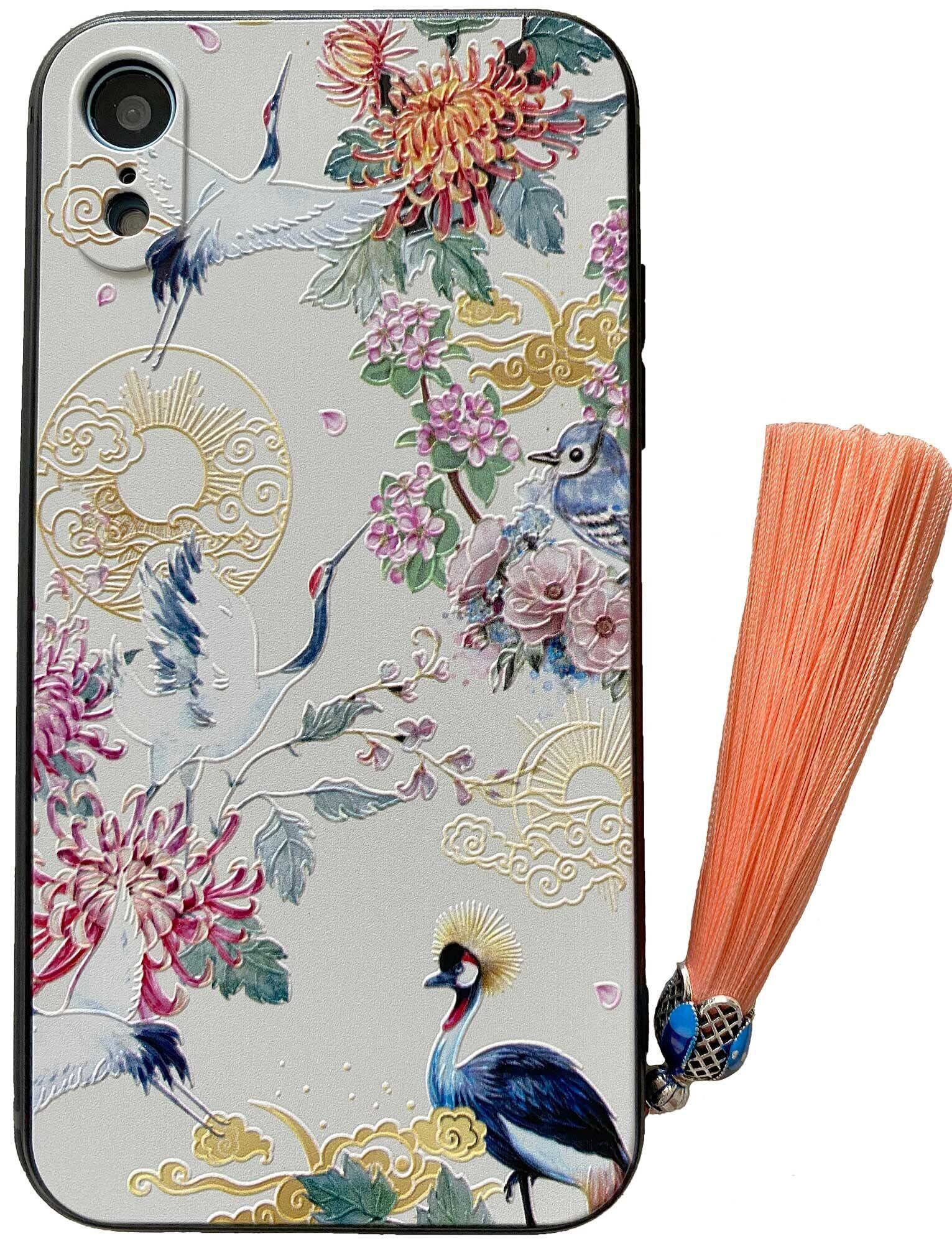 KOLO【鶴花】 iPhone対応 XR ケース iPhoneケース iPhonexrケース 中国風 シノワズリのスマホケース スマホカバー(白 iPhoneXR