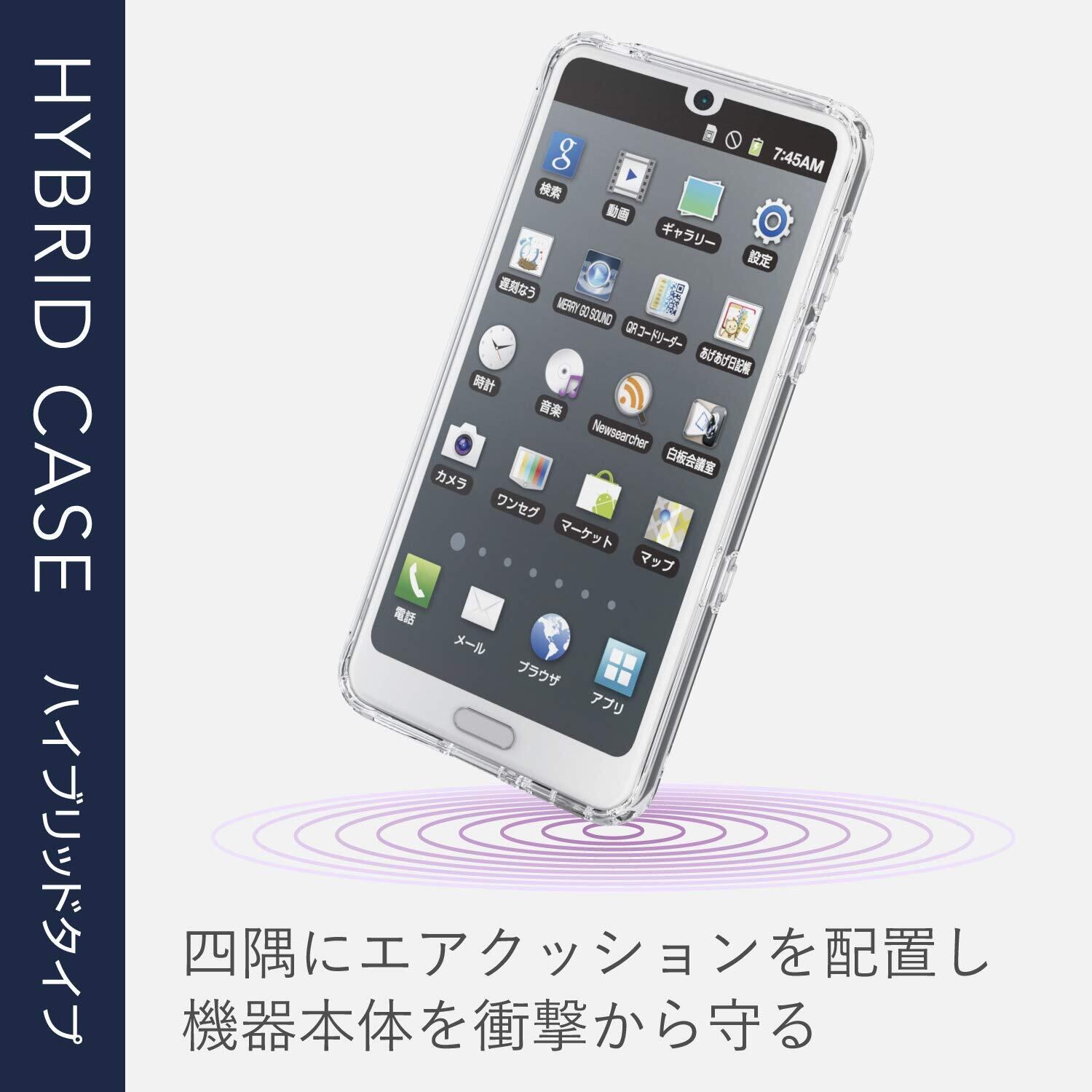 側面に弾力性のあるTPU素材を、背面に強じんで透明度の高いポリカーボネート素材を使用した、スリムなスタイルのAQUOS R3用ハイブリッドケースです。