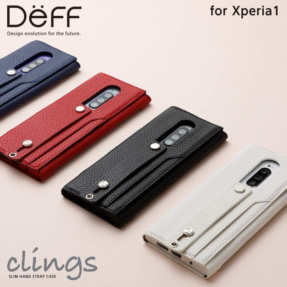 Deff ディーフ Xperia 1用 clings 包み込むようなPUレザーケース ブラック