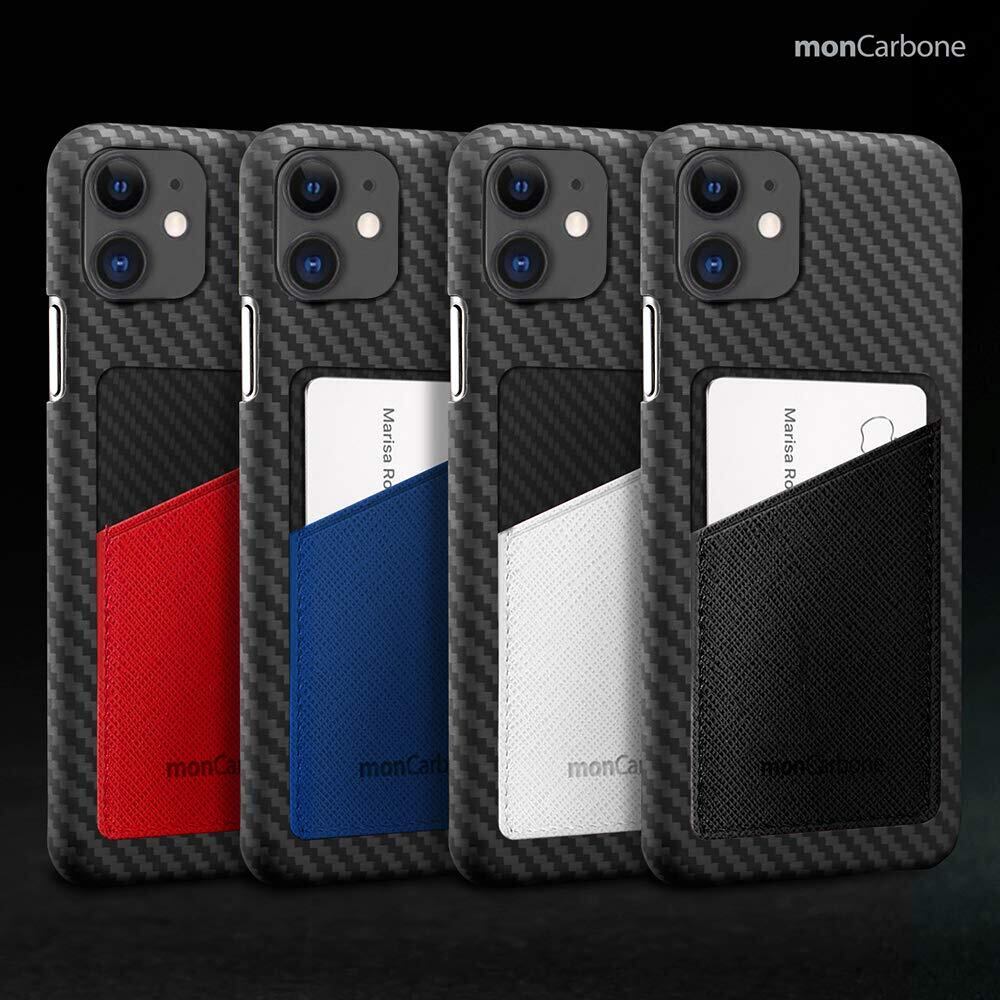 monCarboneカーボンファイバー-iPhone 11用/純正レザー防弾ファイバー/極小スリムポケットケース 6.1インチ/ロイヤルブルーサフィアーノ