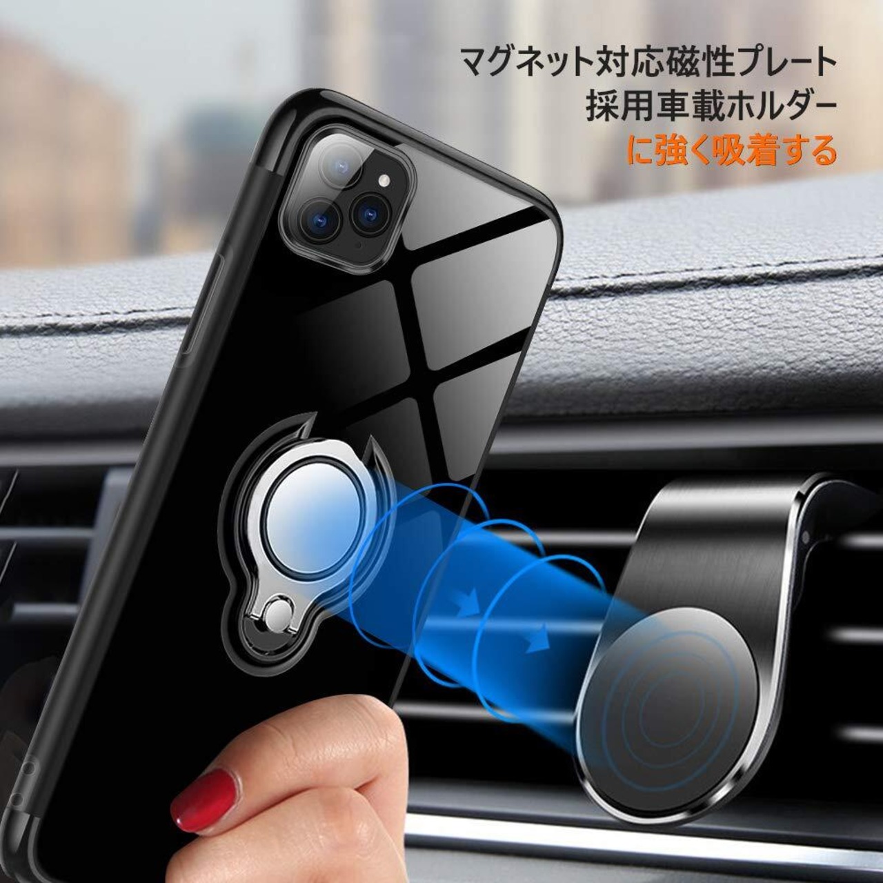 iPhone 11 Pro ケースリング付き 透明 TPU マグネット式 車載ホルダー対応 全面保護 耐衝撃 軽量 薄型 携帯カバー スクラッチ防止 滑り防止 アイフォン11 Pro ケース 5.8インチ専用 一体型(iPhone 11 Pro ケース ブラック)
