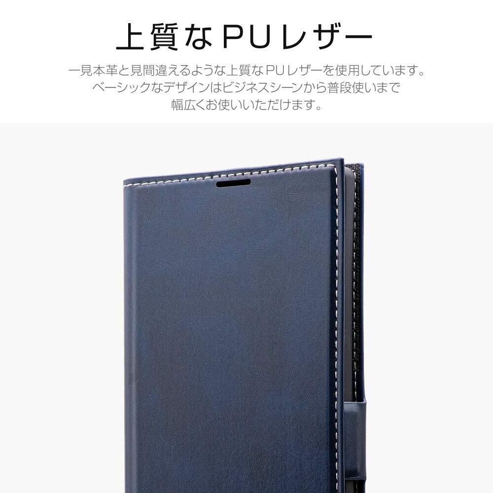 上質なPUレザーを使用したベーシックな手帳型ケース/すぐ取り出せて嵩張らないカード収納ポケット(1枚)/邪魔にならないサイドマグネット固定/動画視聴に最適なスタンド機能/耐衝撃TPUケース採用/ストラップホール搭載