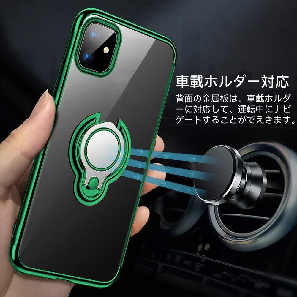 iPhone 11 ケースリング 透明 クリア リング付き tpu シリコン スリム 薄くて軽い耐衝撃 磁気カーマウントホルダー車載ホルダー対応 全面保護 滑り防止 一体型 人気 防塵 携帯カバー 高級なカーボン風 スクラッチ防止 アイフォン11カバー 6.1インチ(ダークグリーン)
