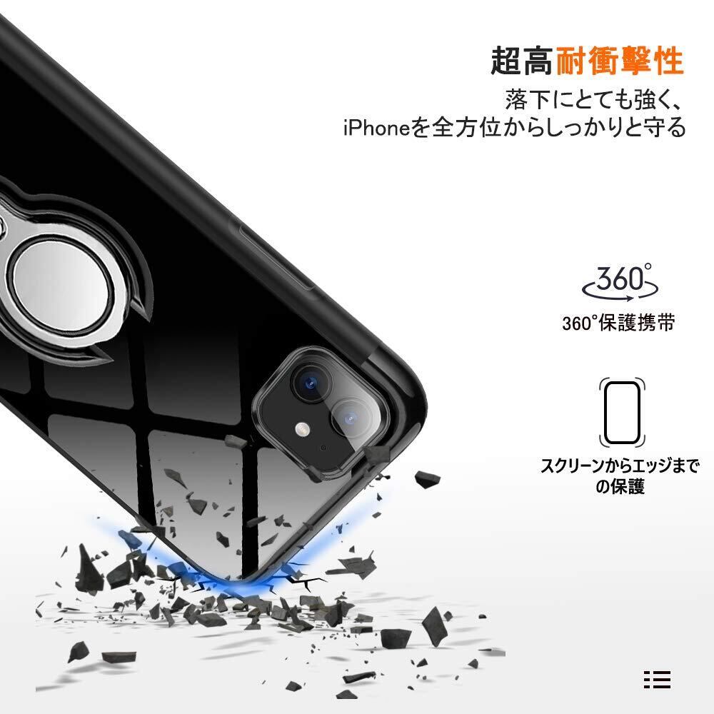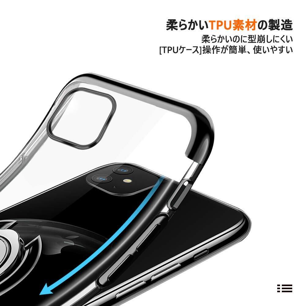 iPhone 11 ケースリング付き 透明 TPU マグネット式 車載ホルダー対応 全面保護 耐衝撃 軽量 薄型 携帯カバー スクラッチ防止 滑り防止 アイフォン11 ケース 6.1インチ専用 一体型(iPhone 11 ケース ブラック)