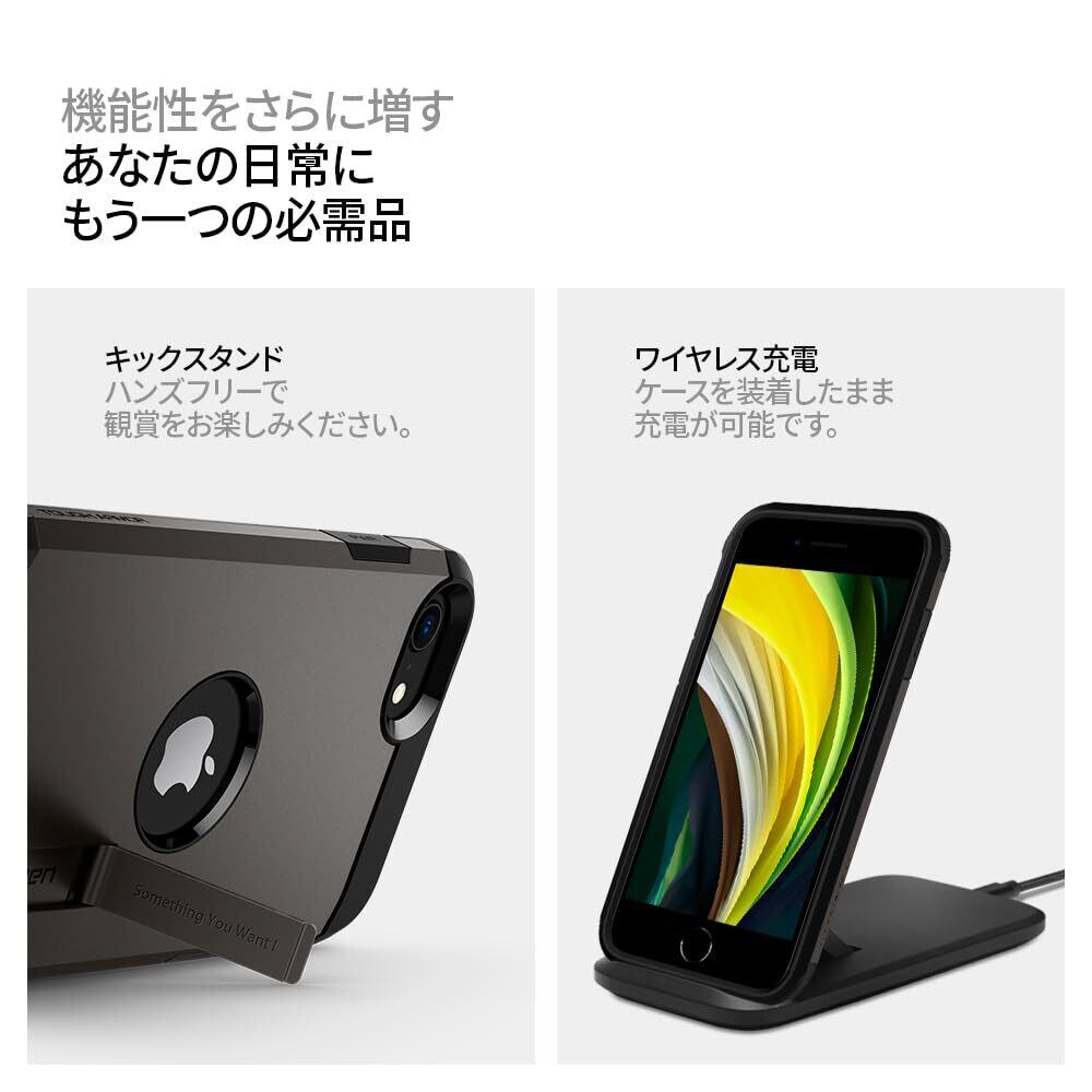 【新着商品】Spigen iPhone SE3 SE2 【第3/2世代】 ケース iPhone7/8用 ケース耐衝撃 スタンド付き 米軍MIL規格取得 三層構造 スマホスタンド カメラ保護 傷防止 衝撃吸収 ワイヤレス充電 タフ・アーマー ACS00949 (ガンメタル) | BOSSO