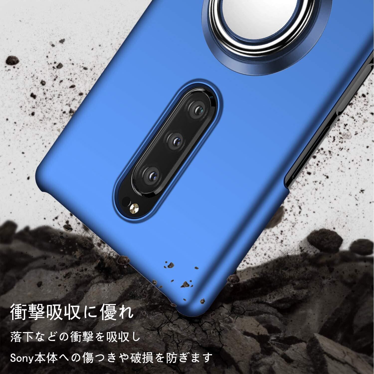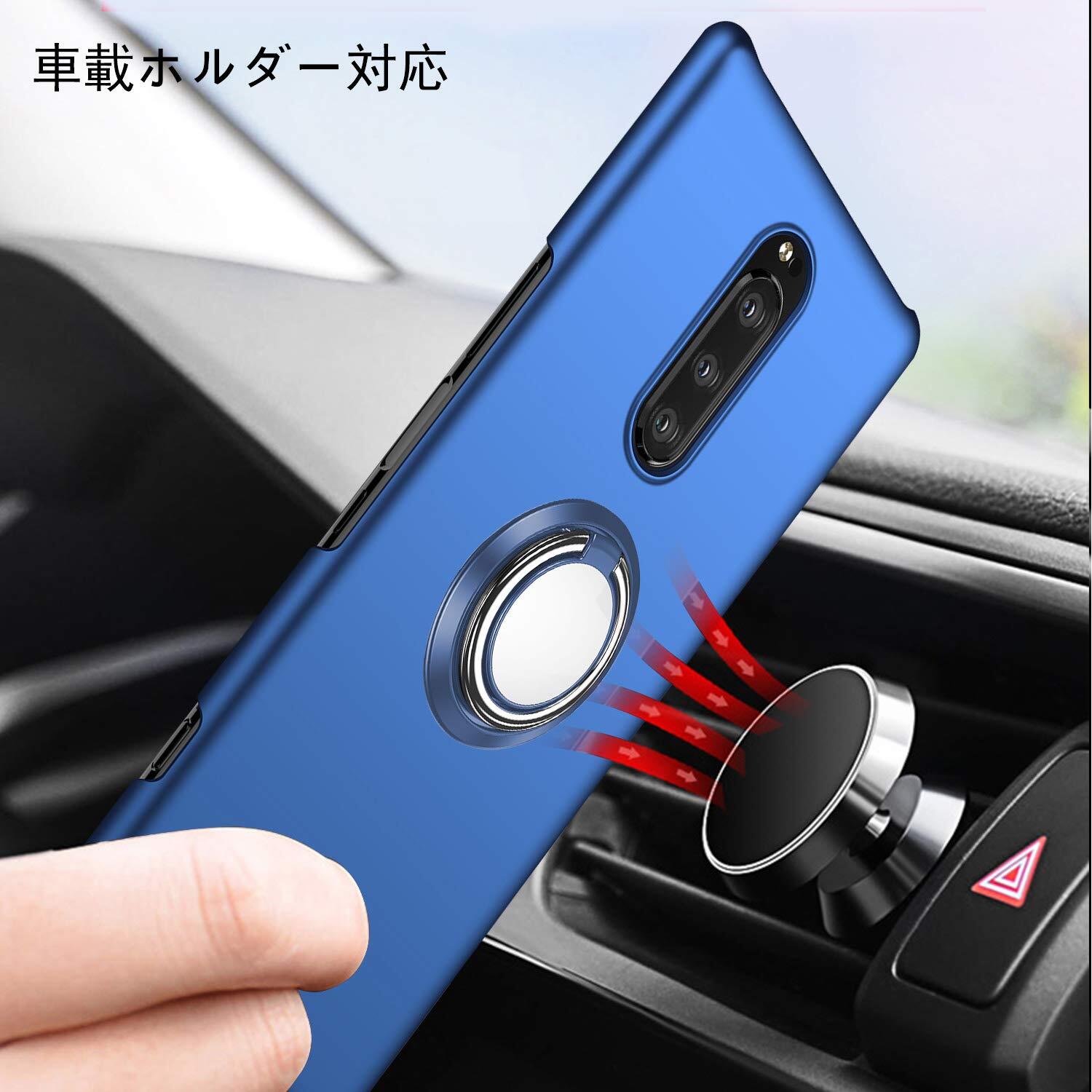 Sony Xperia 1 ケース リング付き 薄型 PC 耐衝撃 指紋防止 超薄型 超耐磨 擦り傷防止 軽量 車載ホルダー対応 レンズ保護 衝撃吸収 Sony Xperia 1[ SO-03L SOV40 ] スマートフォンケース (Xperia 1ケースブルー)