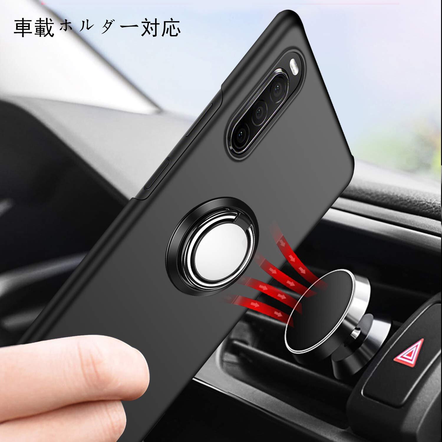 Sony Xperia 10 II ケース リング付き 薄型 PC 耐衝撃 指紋防止 超薄型 超耐磨 擦り傷防止 軽量 車載ホルダー対応 レンズ保護 衝撃吸収 so-41a sov43 a001so スマートフォンケース (Xperia 10 IIケースブラック)