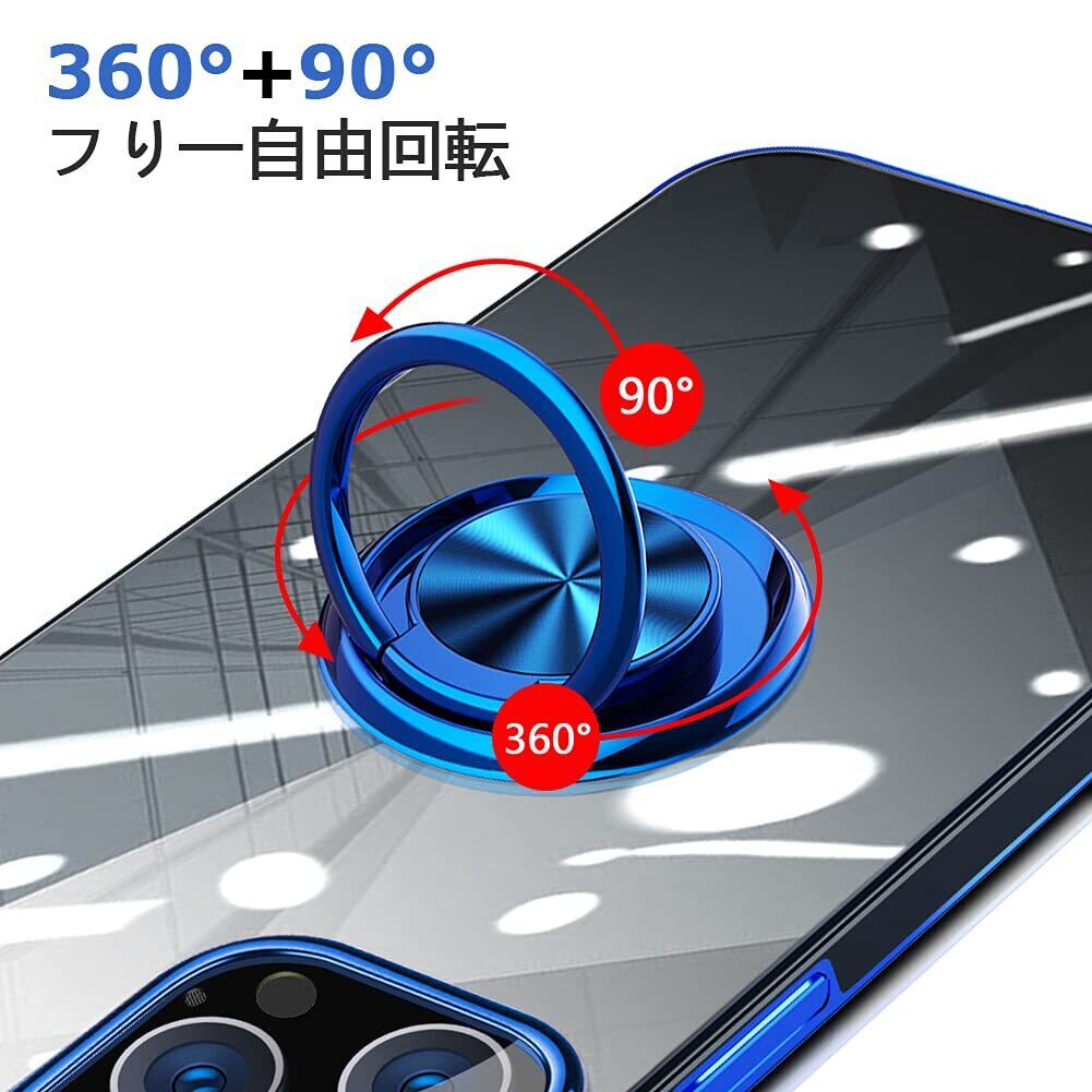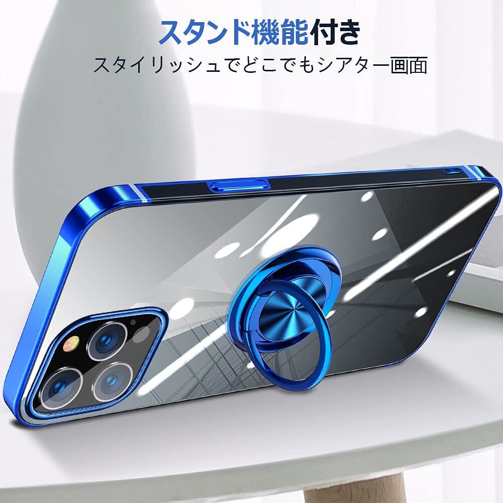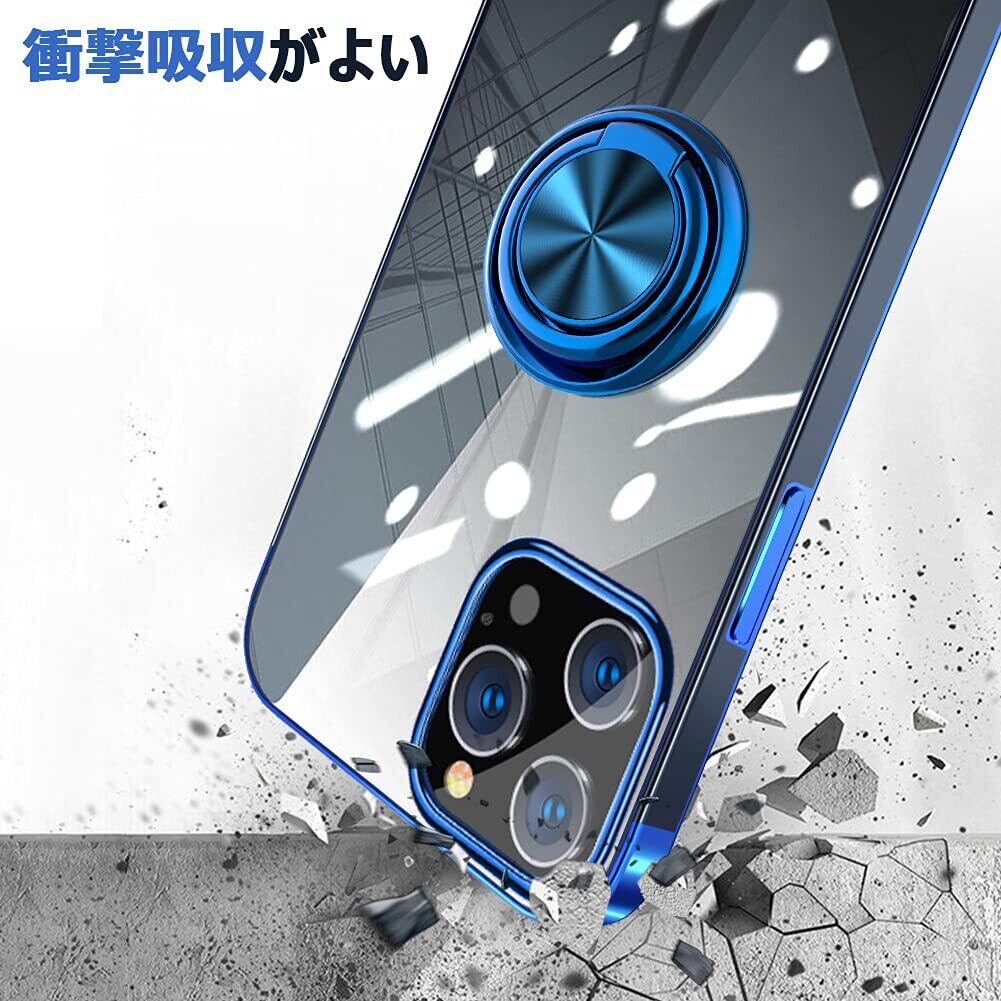 TMUJWS iPhone 11 Pro Max ケース リング付き 透明 耐衝撃 TPUシリコン メッキ加工 全面保護 スタンド機能 軽量 黄変防止 車載ホルダー対応 イフォン11 Pro Max ケース 落下防止 ストラップホール付き 耐摩擦 すり傷防止 気泡防止 薄型 一体型 取り出し易い 一体型 携帯カバー 青 MZ53-09
