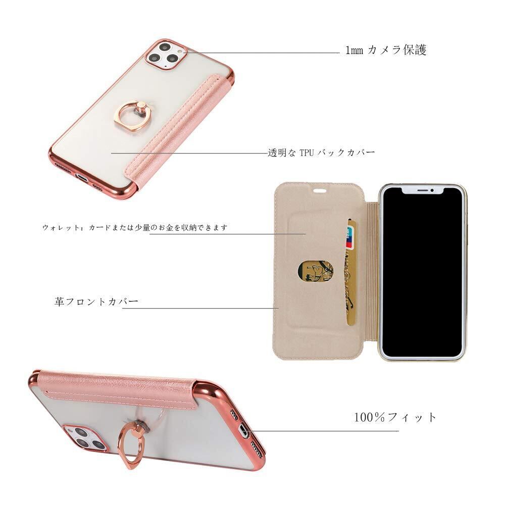 iPhone ケース 財布 指輪 のPUレザー 手帳型 リング付き スマホケース iphoneX、8、8p、7、7p、xs、xsmax、11、11pro、11promax対応 耐衝撃 擦り傷防止 アイフォン用 防塵 カバー TPU 指紋防止 超薄型 全面保護 返品有り (For iPhone x/xs ローズ)