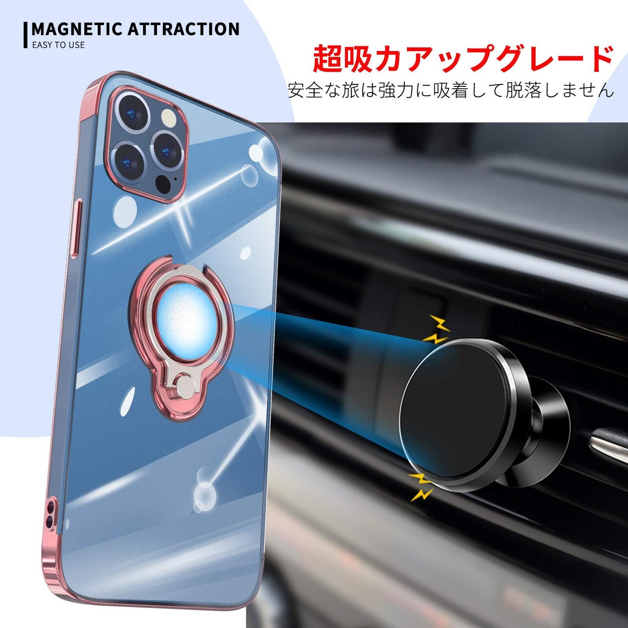 【特価商品】iPhone 12 Pro Max 用ケースリング付き 透明 TPU マグネット式 車載ホルダー対応 全面保護 耐衝撃 軽量 薄型 携帯カバー スクラッチ防止 滑り防止 アイフォン12 Pro Max 用ケース 6.7インチ専用 一体型(iPhone 12 Pro Max 用ケース ローズゴールド) | BOSSO
