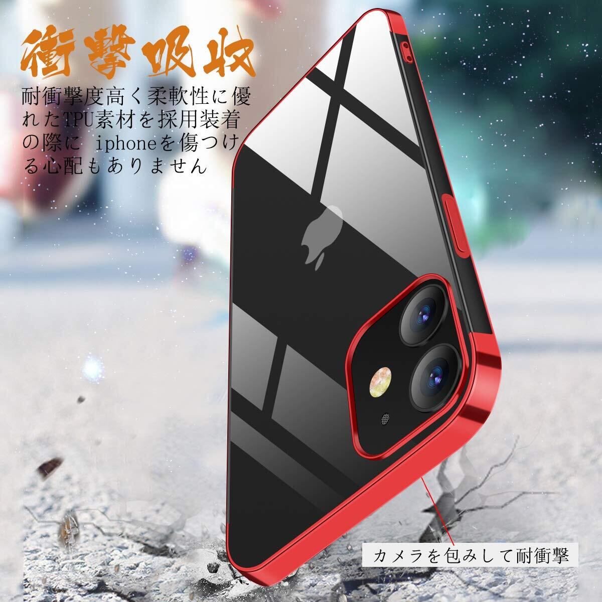 iPhone 12 mini ケース クリア スリム tpu 薄型 5.4インチ iphone12 mini カバー スマホケース 耐衝撃 透明 ストラップホール シリコン メッキ加工 軽量 アイフォン12 mini ケース (レッド)