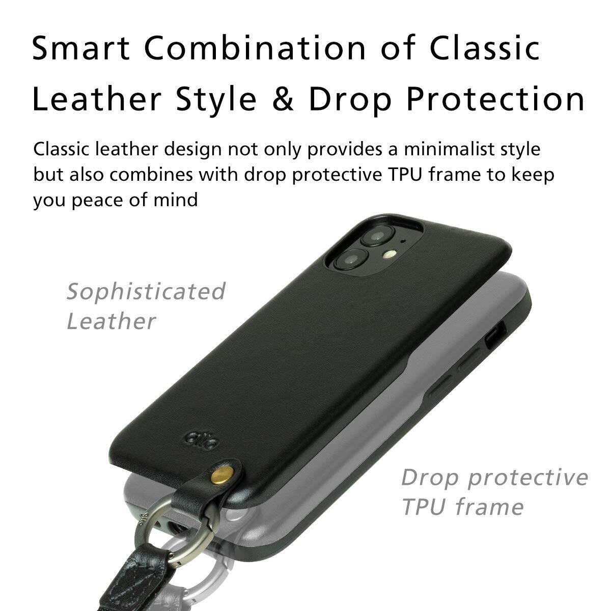 Alto リング 360 iPhone 12 mini (5.4インチ) イタリア製 本革 レザー iPhone 耐衝撃ケース (ブラック)
