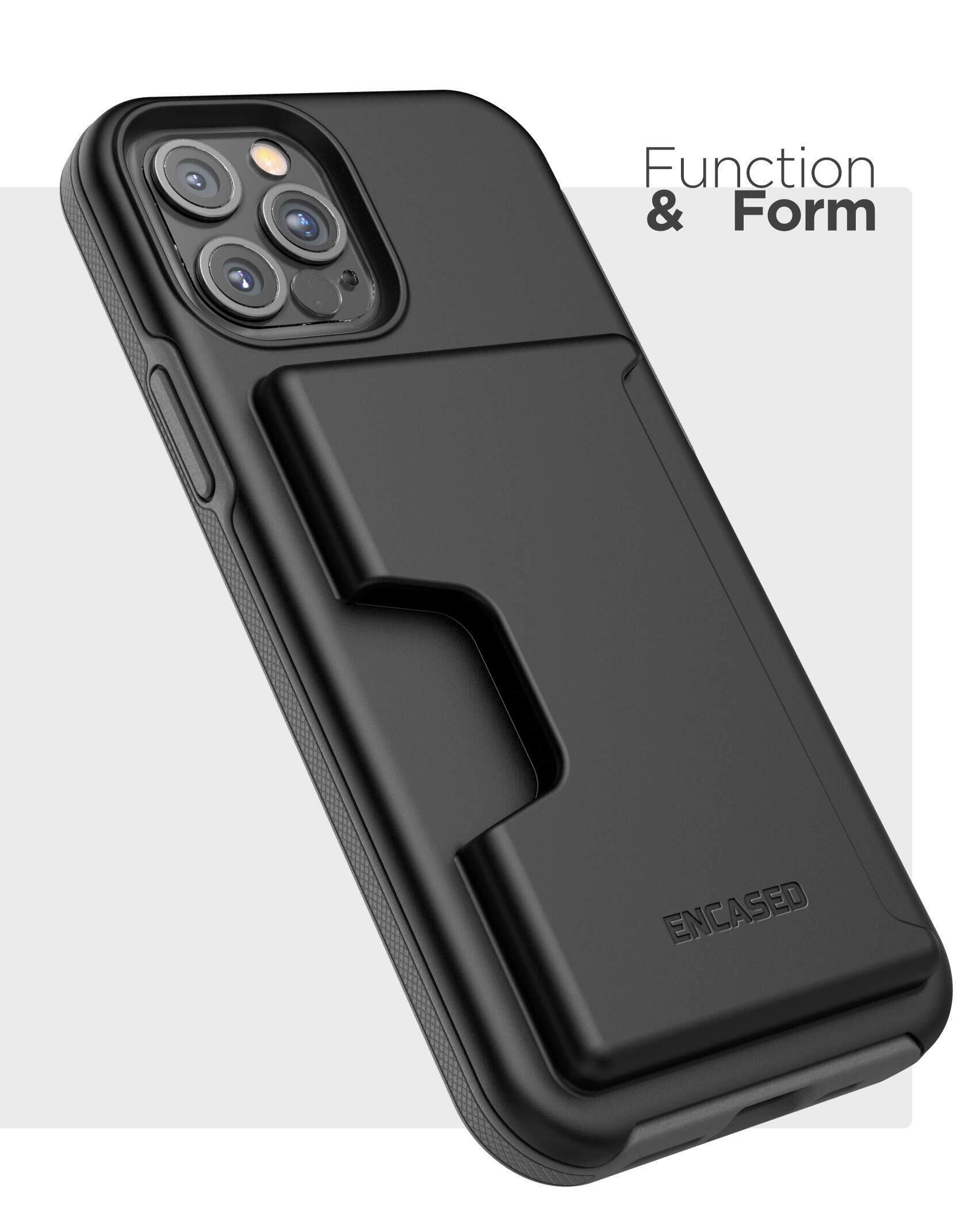 Encased ファントム ウォレットケース iphone12/iphone12pro ケース カード 背面ホルダー付き スマホケース クレジットカード4枚収納 携帯ケース 耐衝撃 擦り傷防止 スマホカバー (ブラック)