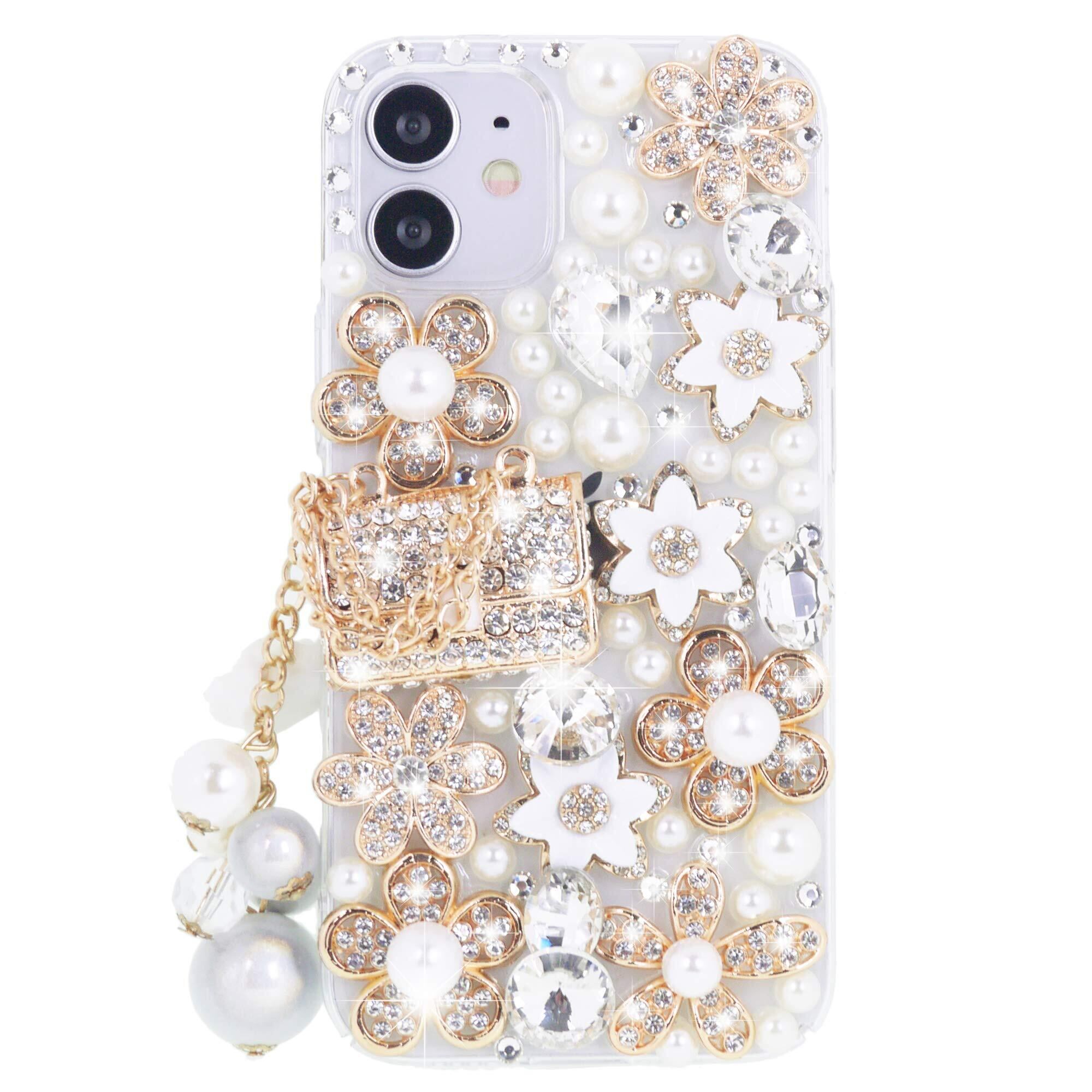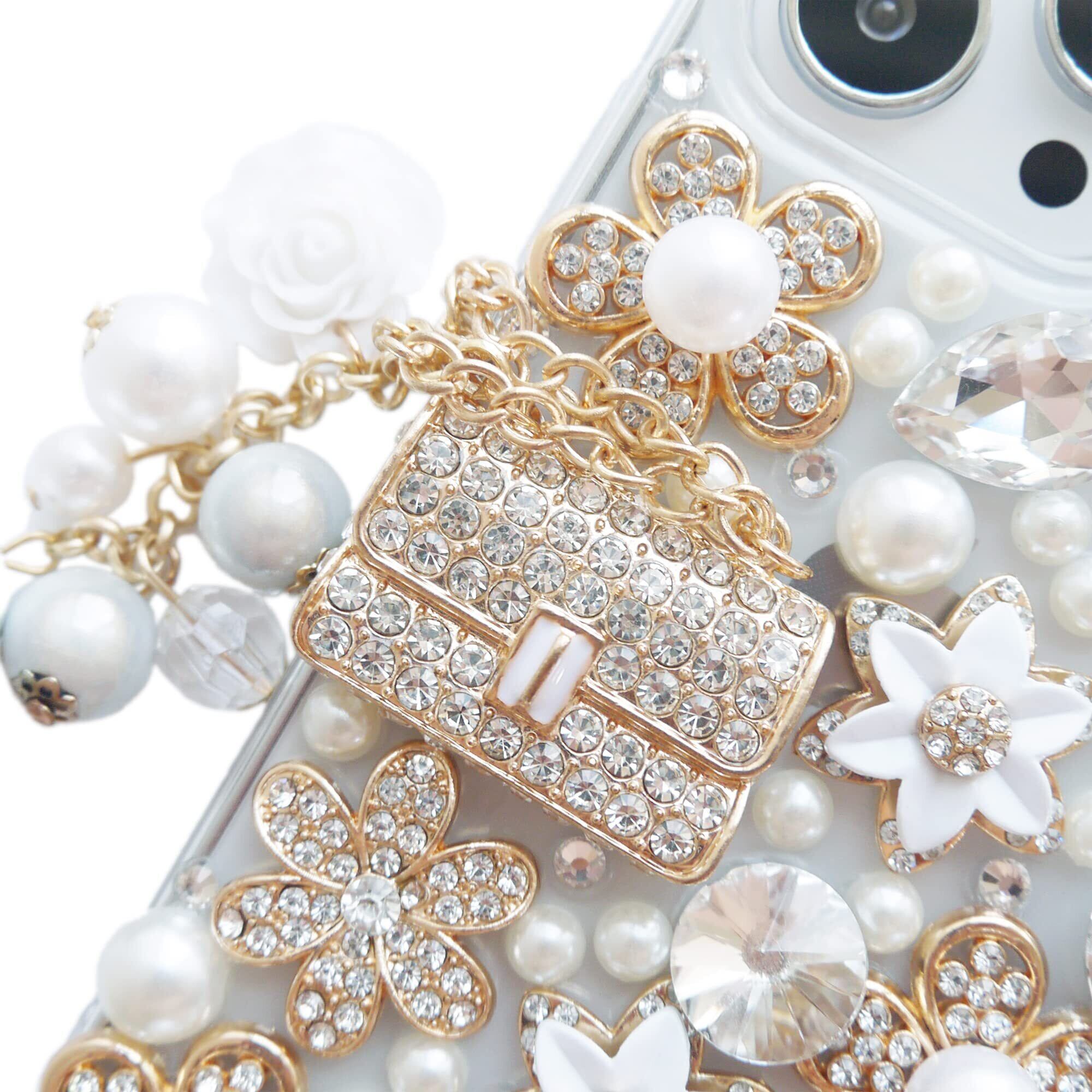 【2022最新】iPhone 12、iPhone 12 Proケース、可愛い キラキラストーン、金属製のハンドバッグの装飾、カメリア花、真珠流苏、 iPhone12 Pro 6.1''2020年版 | BOSSO