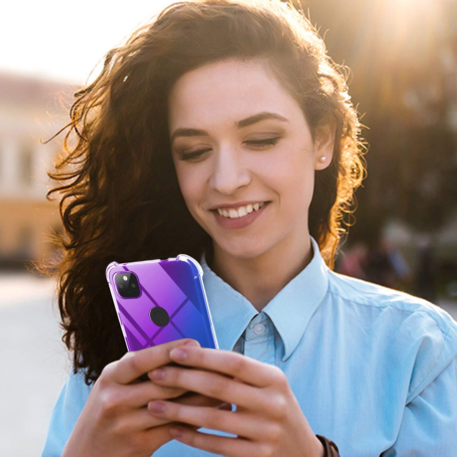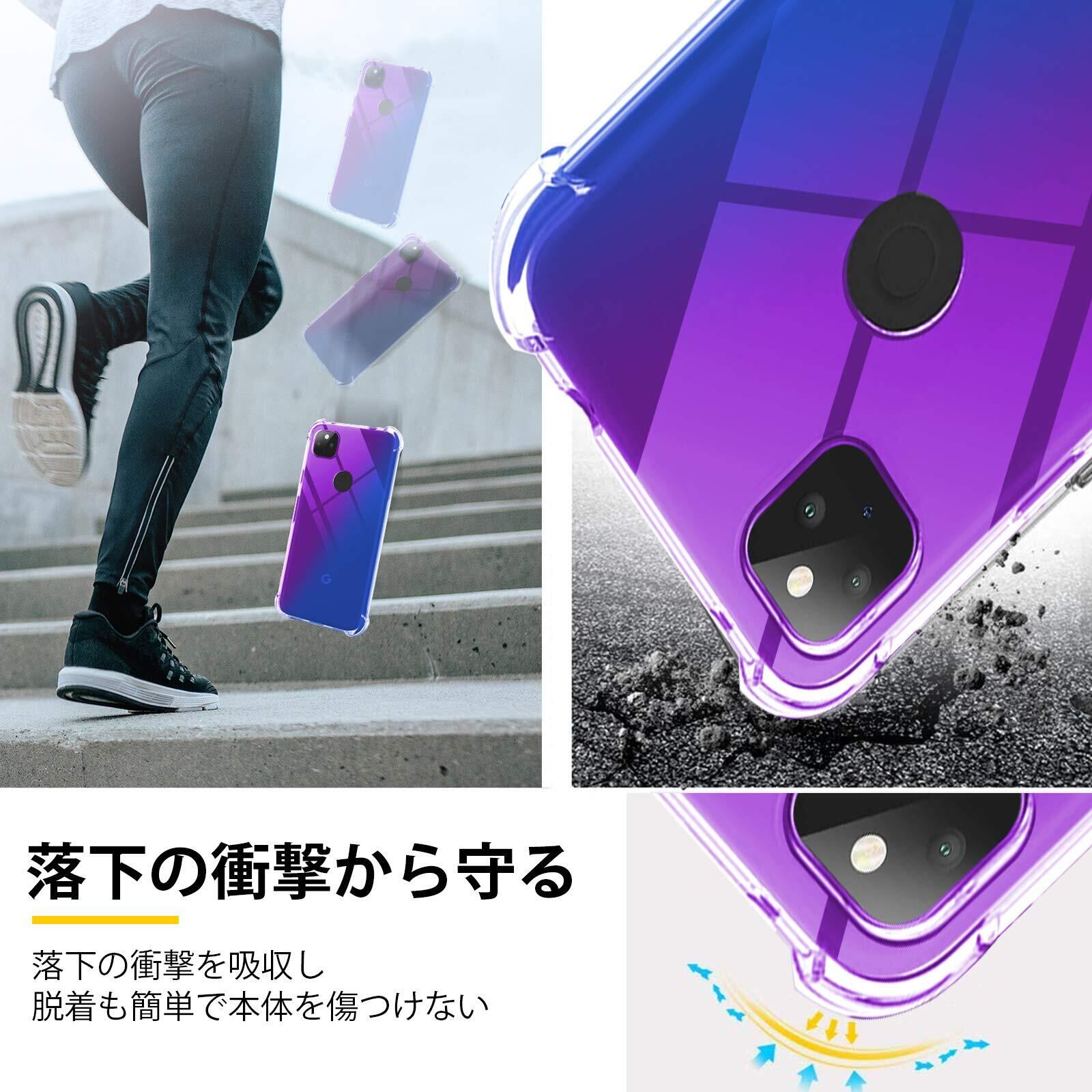 Google Pixel 5 ケース TPU クリア 薄型 軽量シリコン グラデーション色 ケース 耐衝撃 指紋防止 防塵 一体型 人気 携帯カバー (パープルブルー)