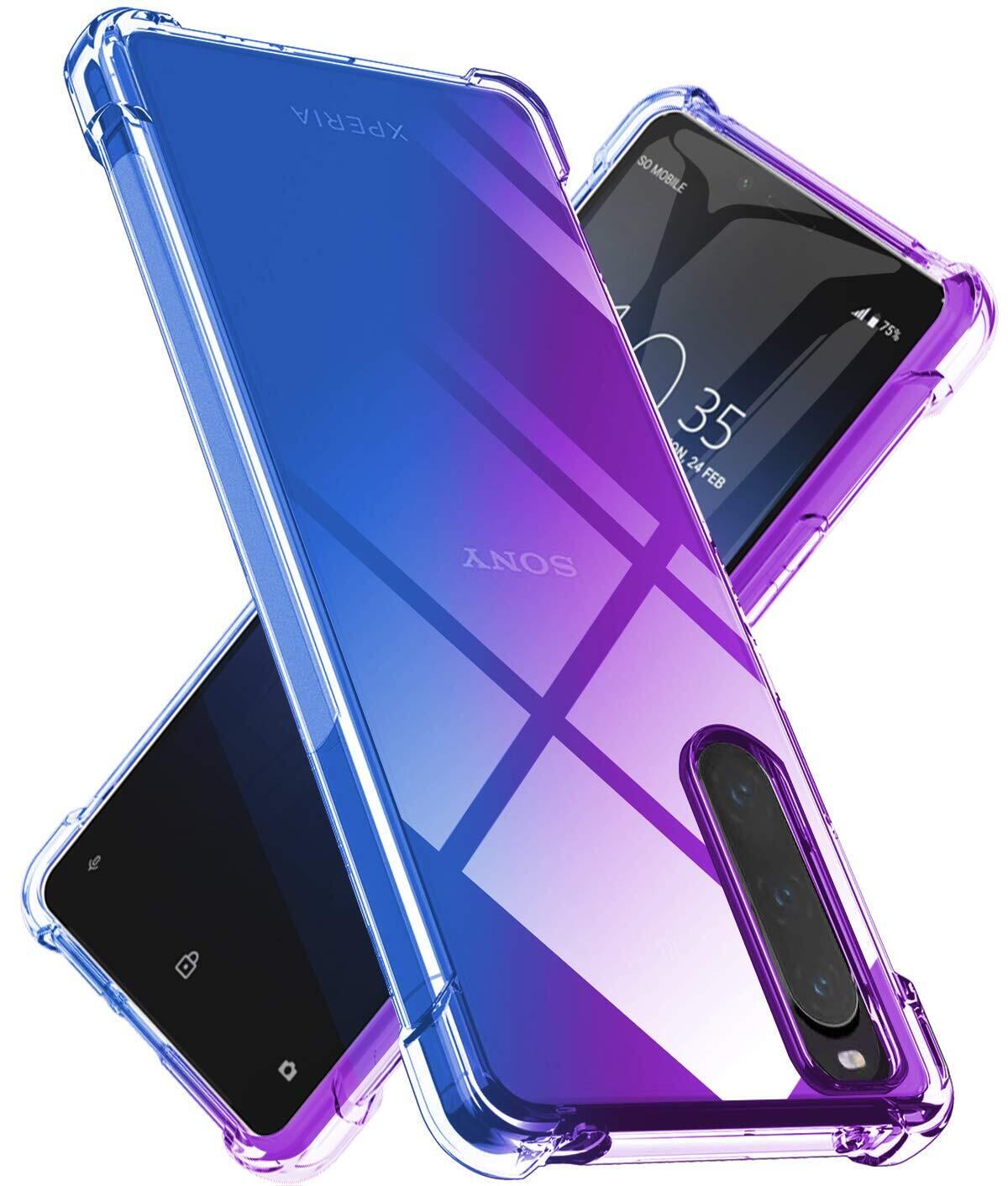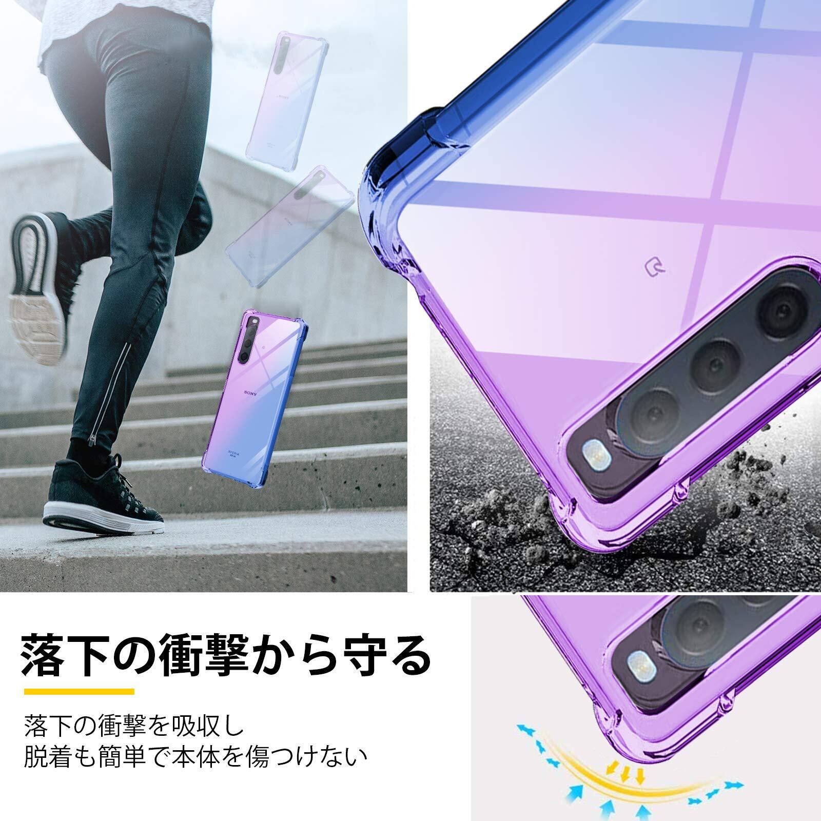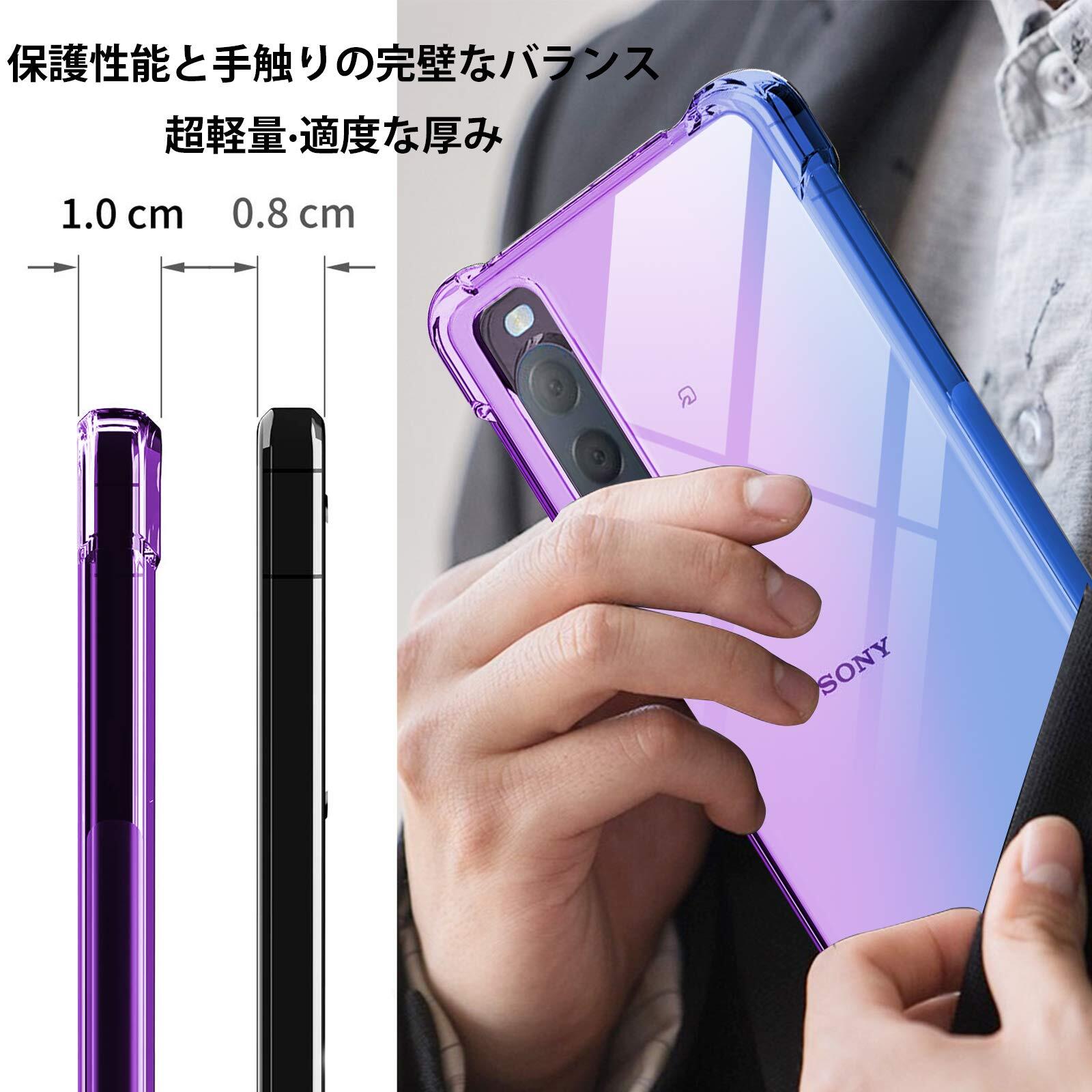 Xperia 10 II ケース クリア TPU 薄型 軽量 シリコン グラデーション色 ケース 耐衝撃 SO-41A SOV43 スマホケース 黄変防止防塵 一体型 人気 携帯カバー(パープルブルー)