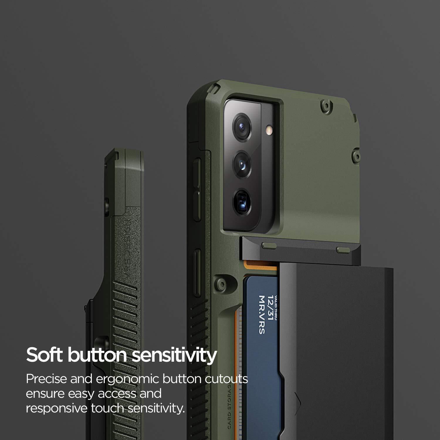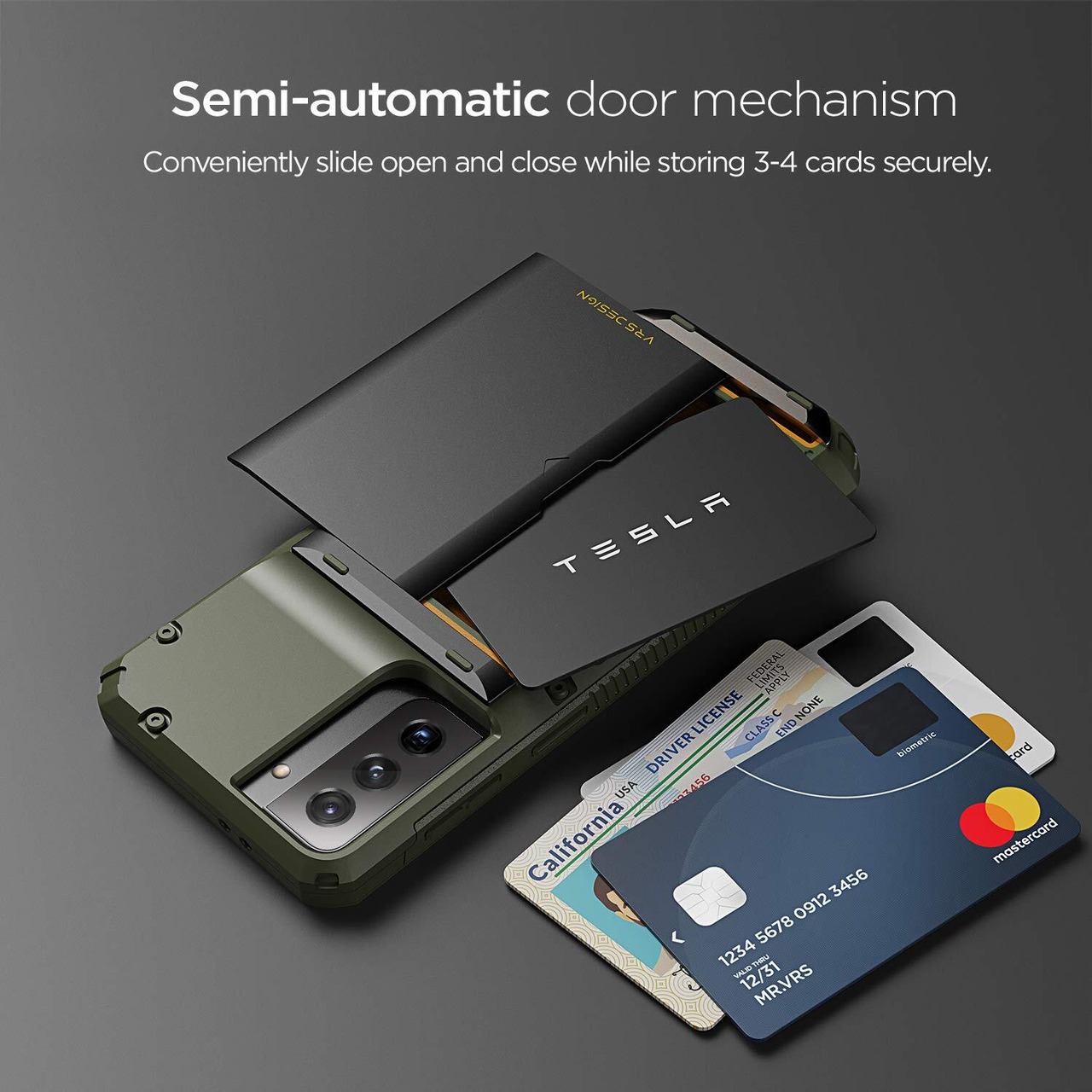 【VRS】 Galaxy S21 5G 対応 ケース カード 収納 3枚 耐衝撃 スマホケース 衝撃 吸収 背面 スライド 式 カードケース 付 ハード カバー 頑丈 対衝撃 携帯ケース [ Samsung GalaxyS21 ギャラクシー S21 ギャラクシーS21 / SCG09 / SC-51B 対応 ] Damda Glide Pro グリーンロゴ