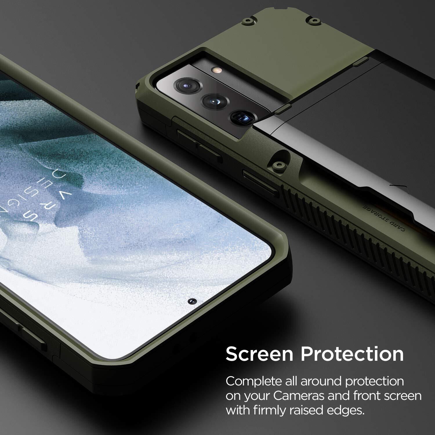 【人気商品】【VRS】 Galaxy S21 5G 対応 ケース カード 収納 3枚 耐衝撃 スマホケース 衝撃 吸収 背面 スライド 式 カードケース 付 ハード カバー 頑丈 対衝撃 携帯ケース [ Samsung GalaxyS21 ギャラクシー S21 ギャラクシーS21 / SCG09 / SC-51B 対応 ] Damda Glide Pro グリーンロゴ | BOSSO