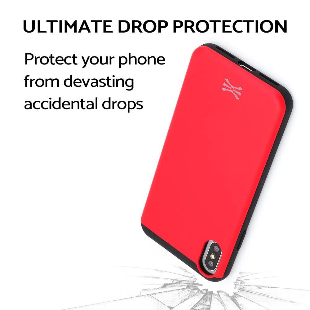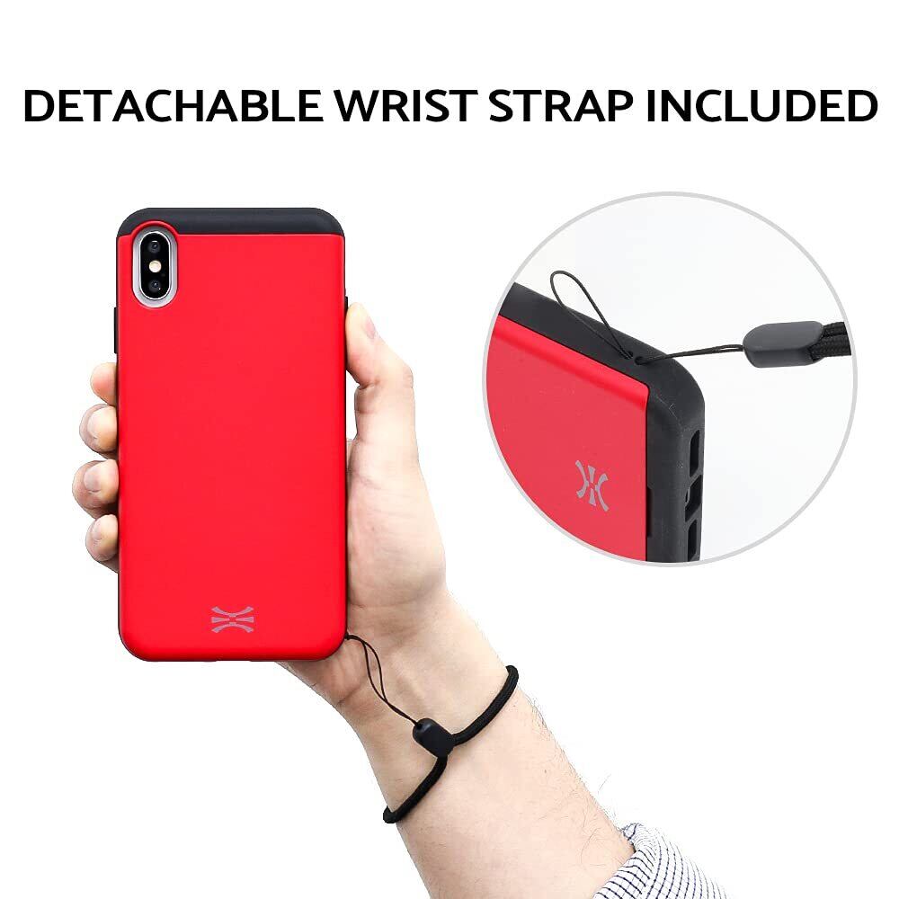 TORU CX SLIDE iPhone Xs Max ケース カード収納 スライド式 カードホルダー 耐衝撃 デュアルレイヤー ハイブリッド ウォレットケース ハード カバー (ストラップ含ま) - 赤