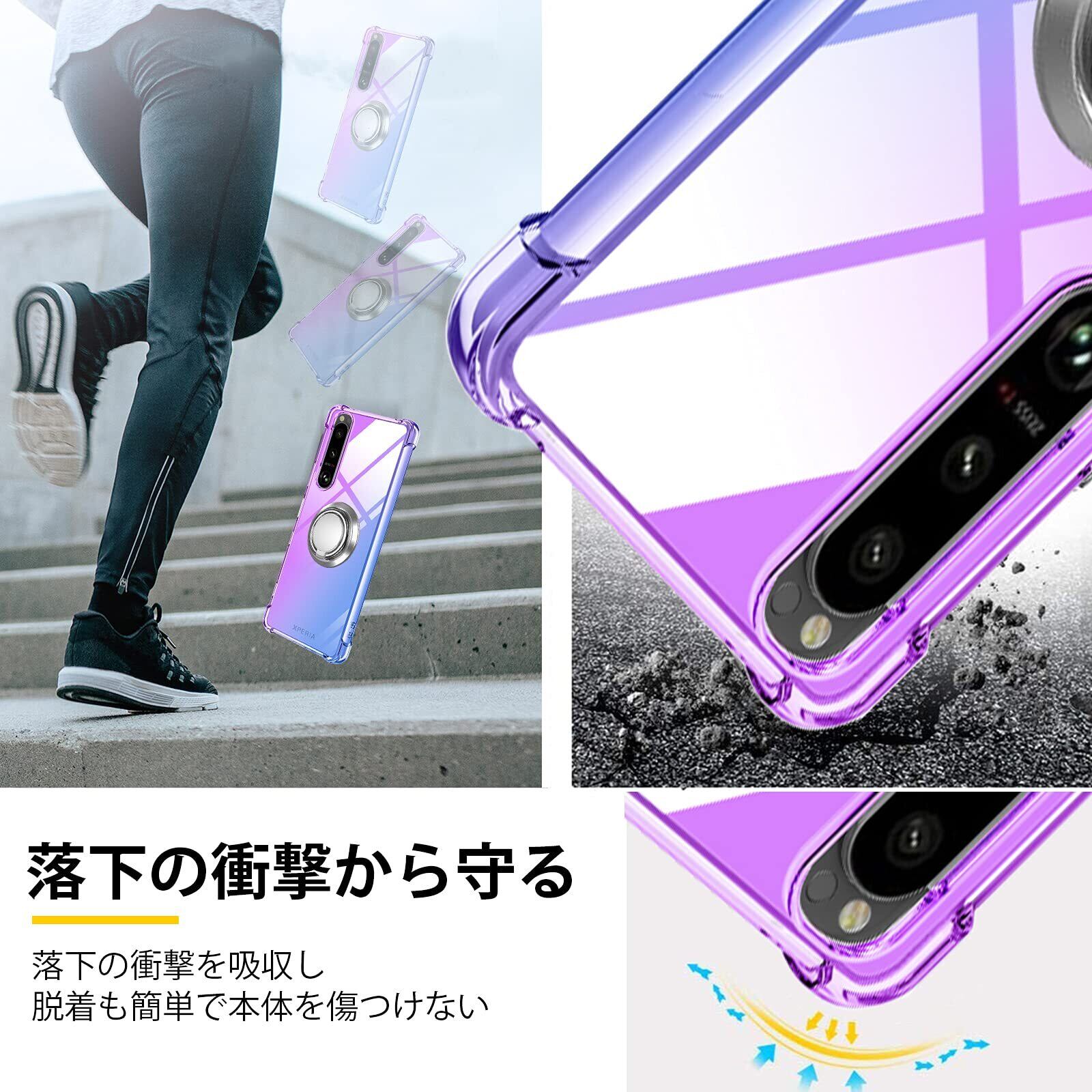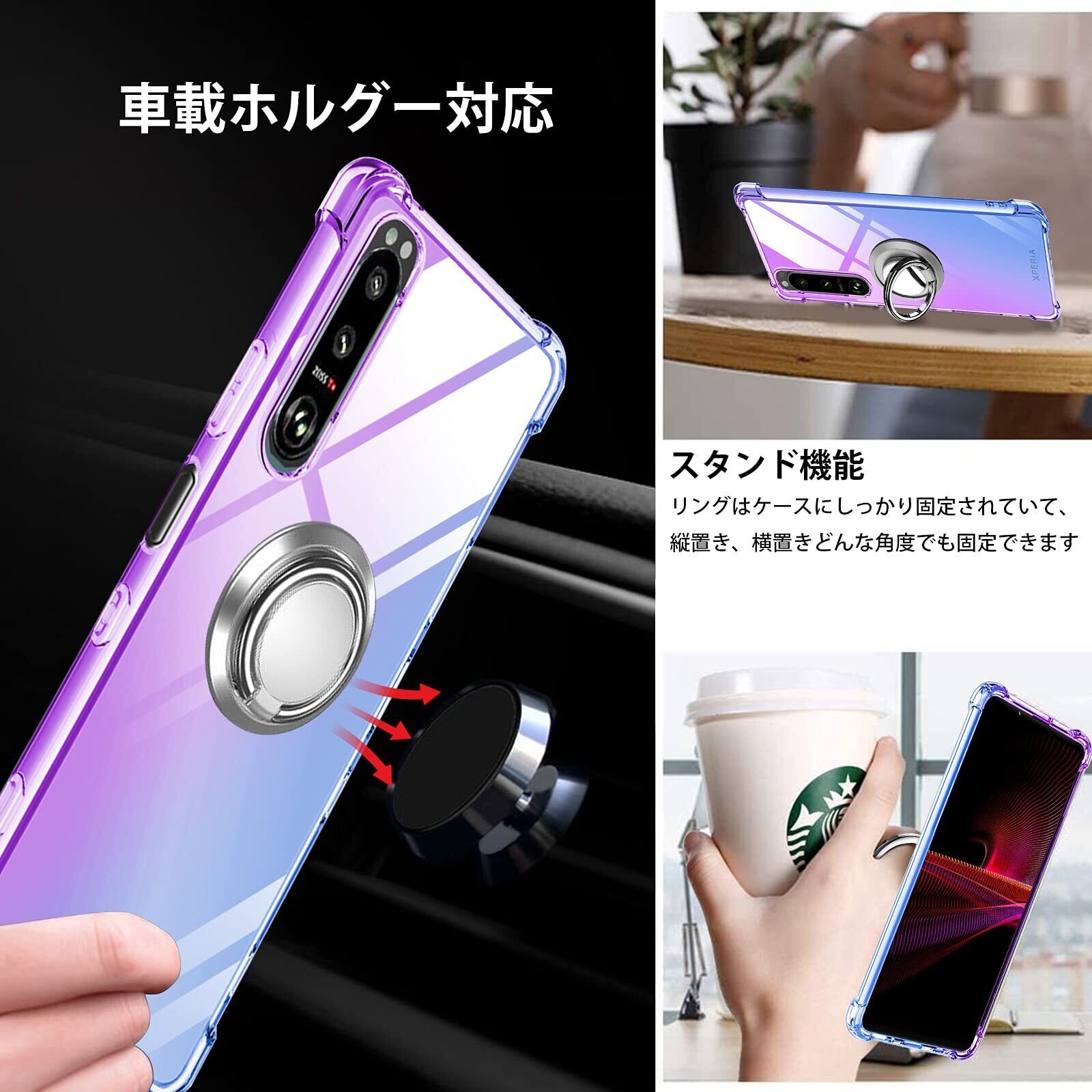 Xperia 5 III ケース リング クリア TPU シリコン リング付き 薄型 グラデーション色 ケース 軽量シリコン 耐衝撃 スマホケース 指紋防止 360回転 車載ホルダー対応 一体型 人気 携帯カバー(パープルブルー)