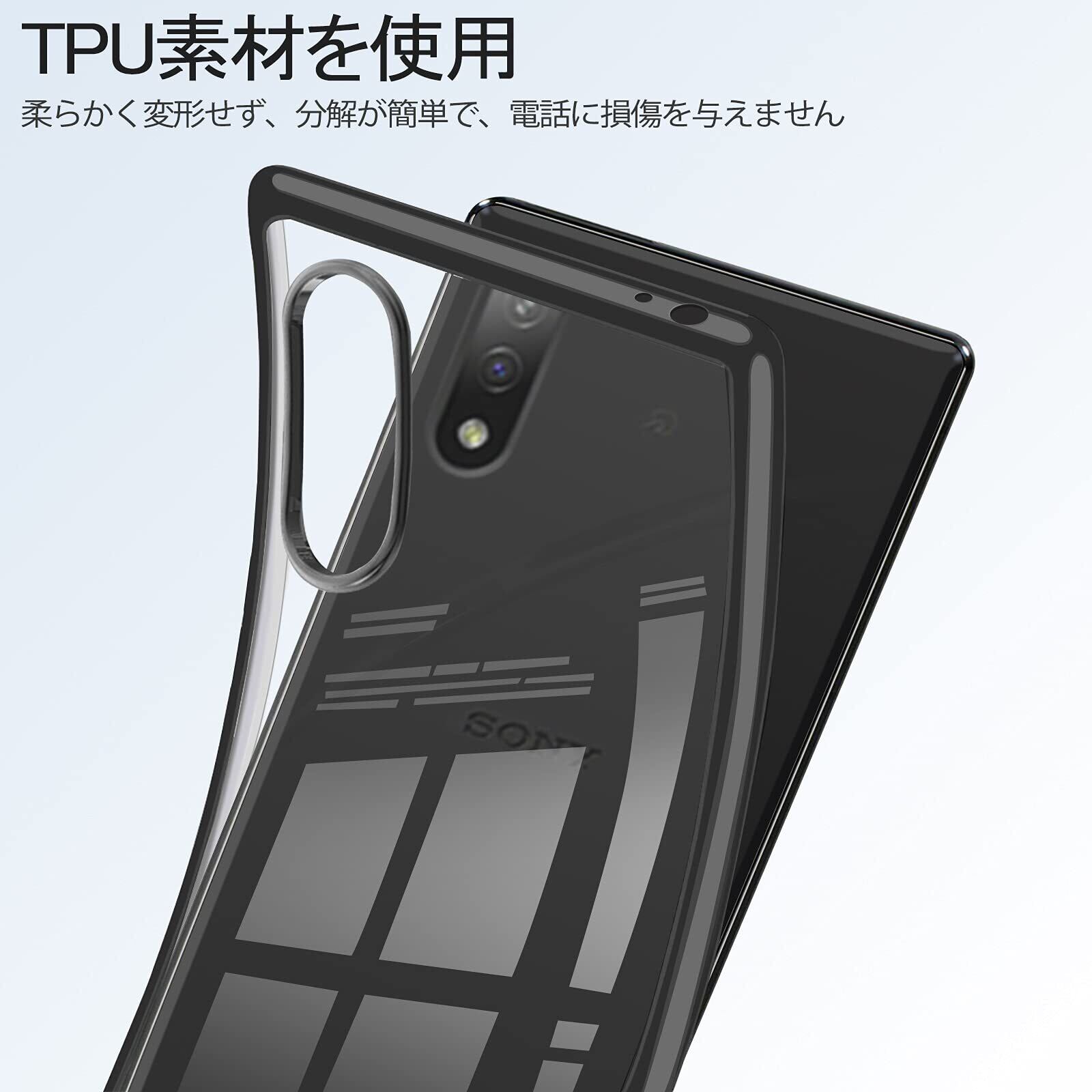 【2022最新】Xperia Ace II ケース クリア SO-41B スマホケース ソフトtpu 透明 背面クリア 黒 メッキ加工 エスクペリア Ace2 超軽量 耐衝撃 シリコン レンズ保護 ストラップホール付き カバー ブラック | BOSSO