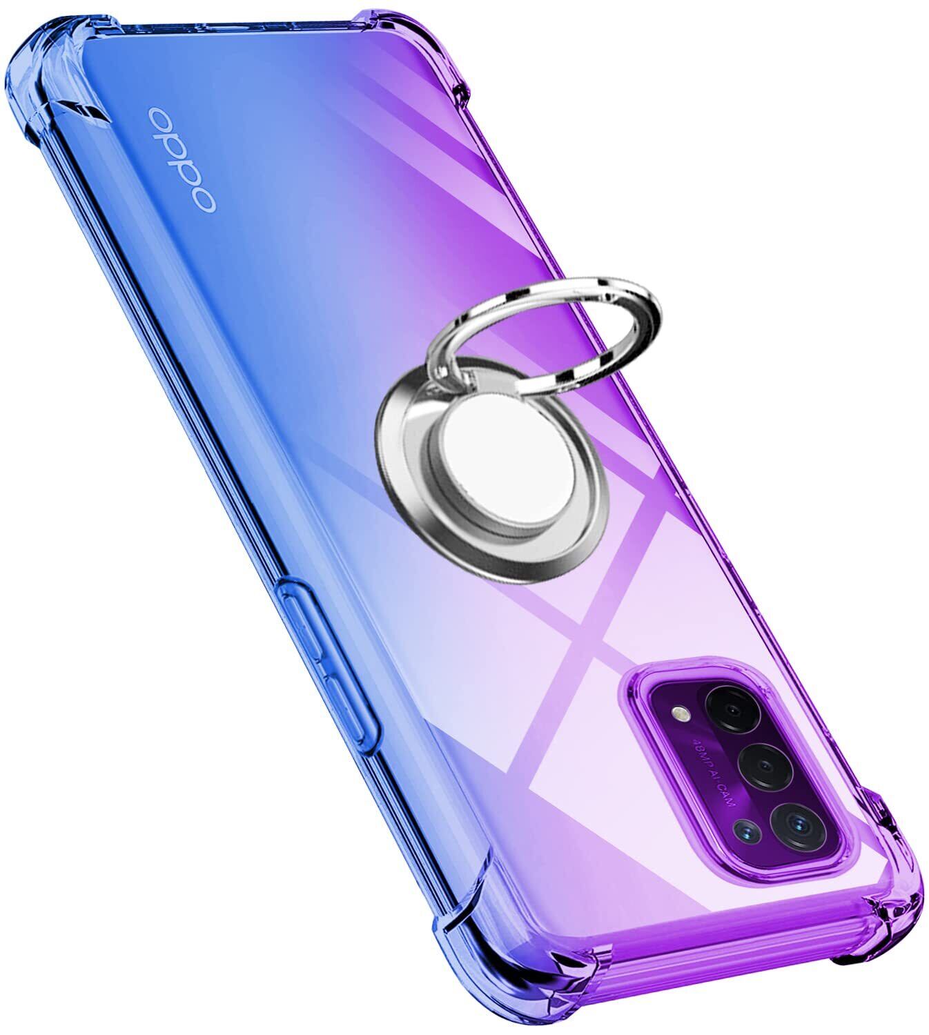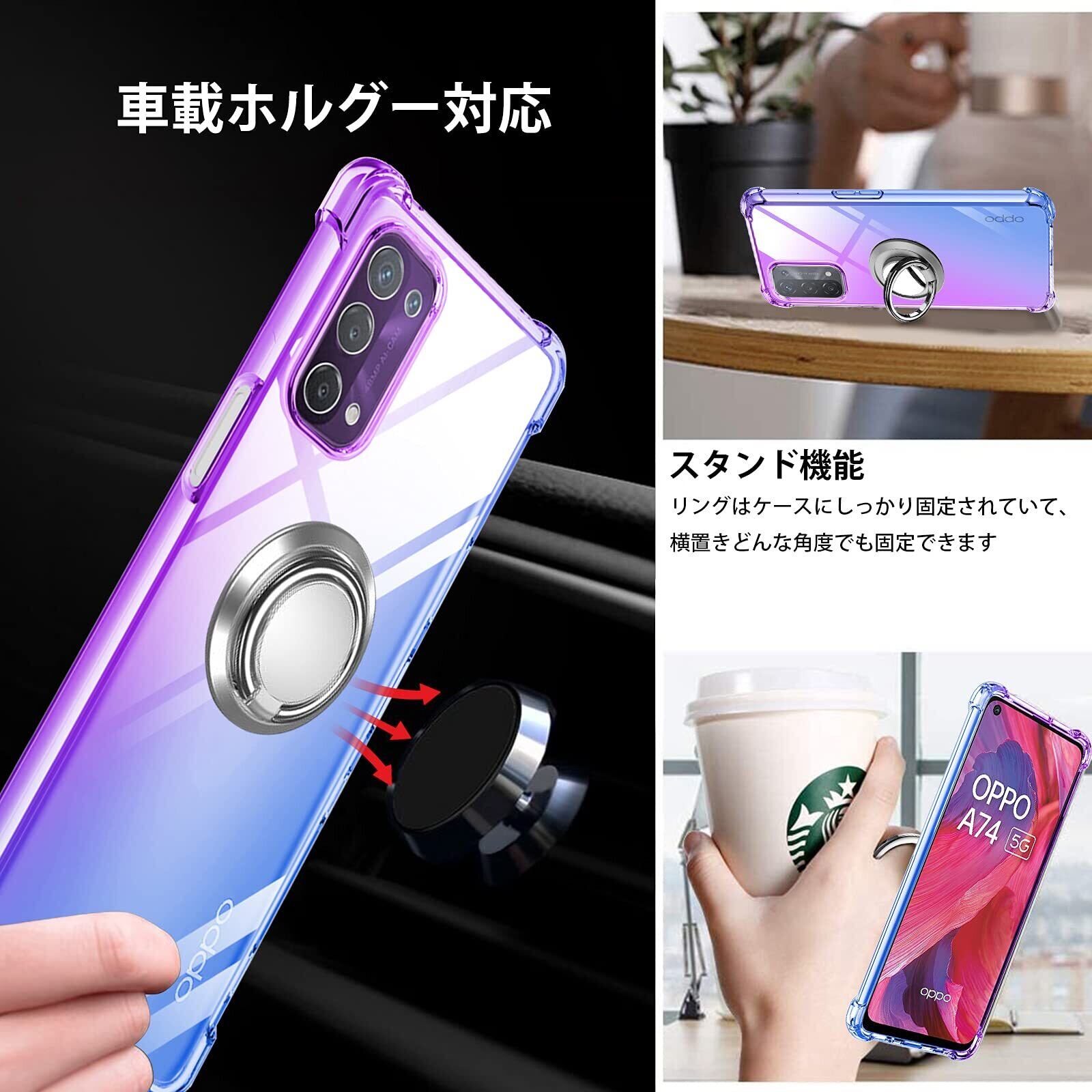 OPPO A54 5G ケース リング クリア TPU シリコン リング付き薄型 軽量 シリコン グラデーション色 ケース耐衝撃 指紋防止 360回転 車載ホルダー対応 一体型 人気 携帯カバー スマホケースOPPO A54 専用(パープルブルー)