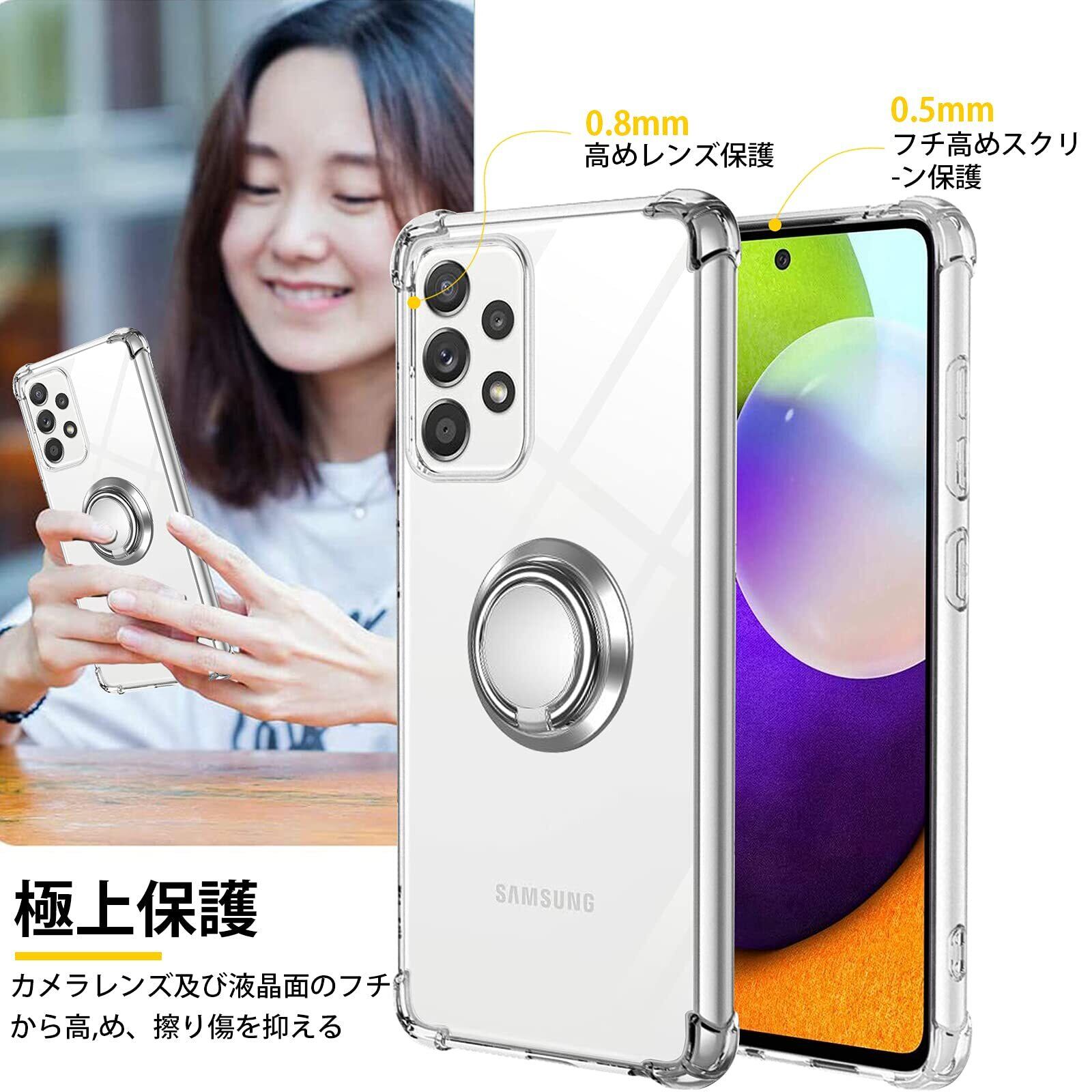 Galaxy A52 5G ケース リング 透明 tpu 薄型 軽量シリコン ギャラクシーA52 5Gカバー 耐衝撃 指紋防止 車載ホルダー対応 防塵 一体型 人気 携帯カバー(クリア)