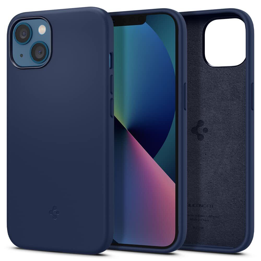 Spigen iPhone 13 ケース シリコン 4重構造 指紋防止 擦り傷防止 レンズ保護 超薄型 超軽量 シリコンフィット ACS03550 (ネイビー・ブルー)