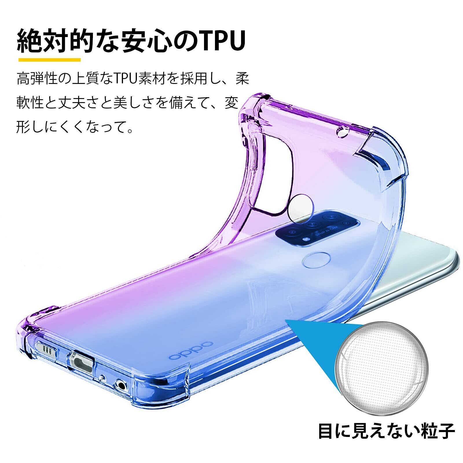 OPPO Reno5 A ケース TPU クリア 薄型 軽量シリコン グラデーション色 ケース 耐衝撃 米軍MIL規格取得 黄変防止 防塵 一体型 人気 携帯カバー (パープルブルー)
