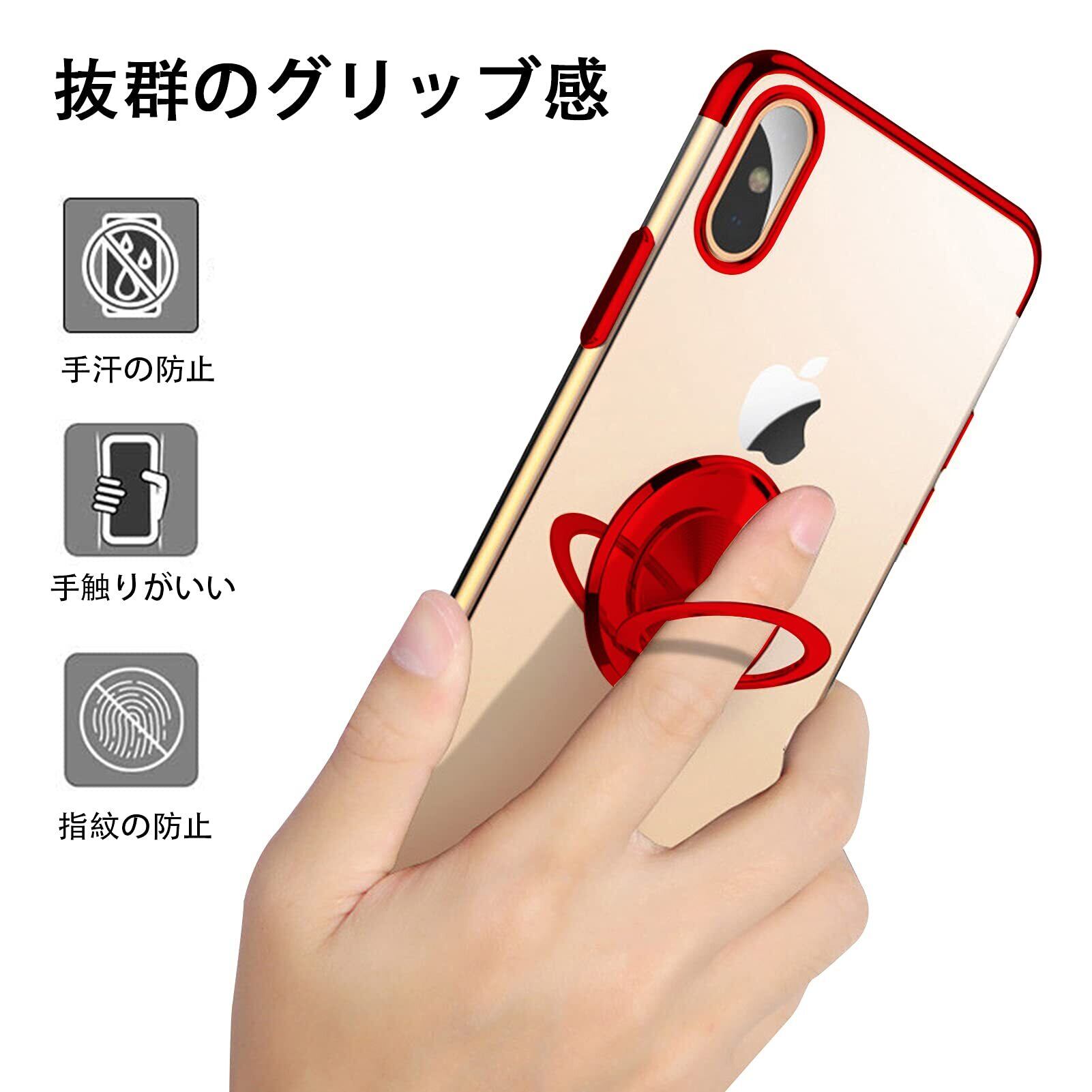 iPhone 7 Plus 用 ケース iPhone 8 Plus 用 ケース リング クリア 透明 TPU メッキ 加工 耐衝撃 車載ホルダー対応 スタンド機能 防塵 薄型 軽量 落下防止 一体型 変形防止 全面保護カバー アイフォン 用 ケース 赤 MJJ-SJ-1052-2-02