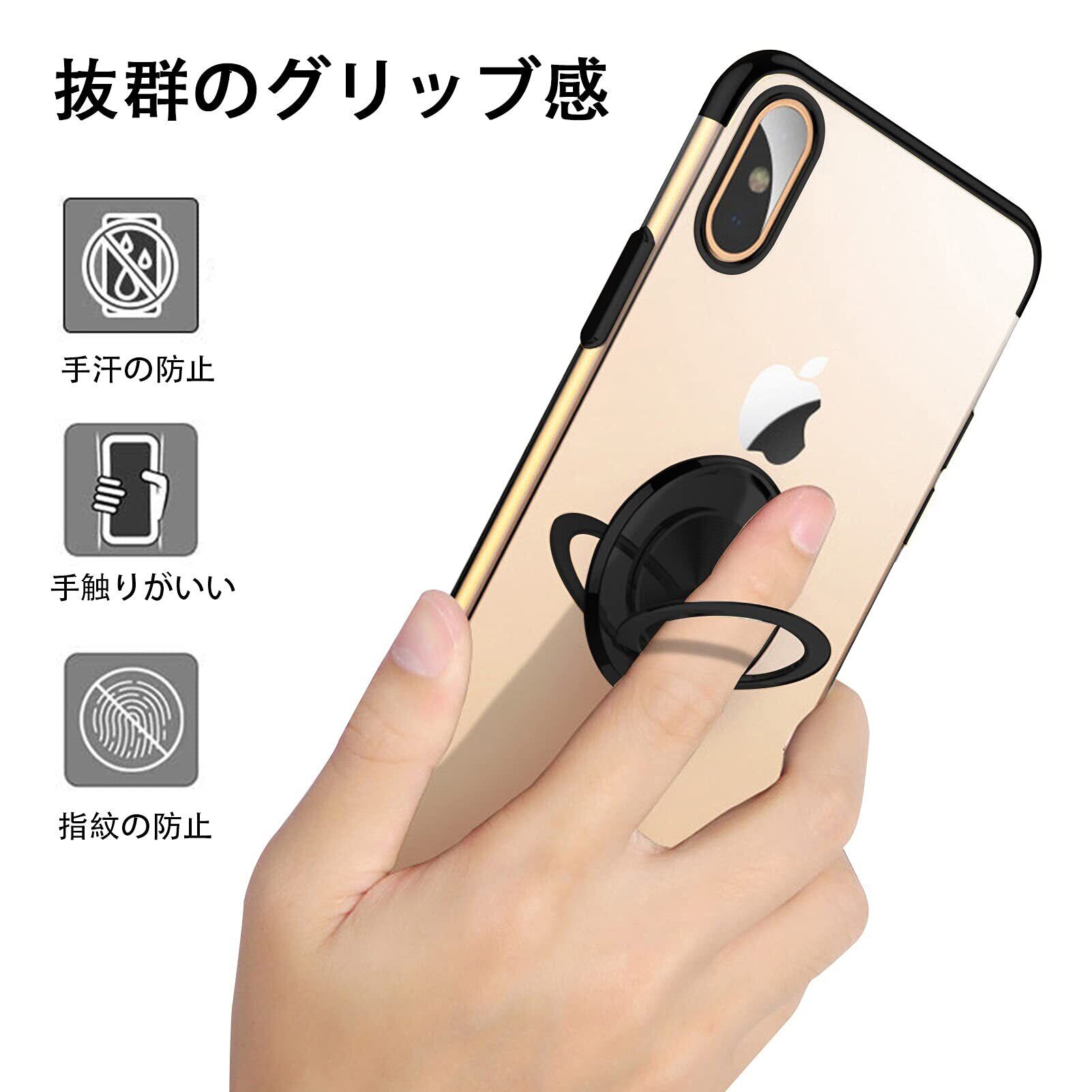 iPhone X 用 ケース iPhone XS 用 ケース リング クリア 透明 TPU メッキ 加工 耐衝撃 車載ホルダー対応 スタンド機能 防塵 薄型 軽量 落下防止 一体型 変形防止 全面保護カバー アイフォン 用 ケース 黒 MJJ-SJ-1052-3-01