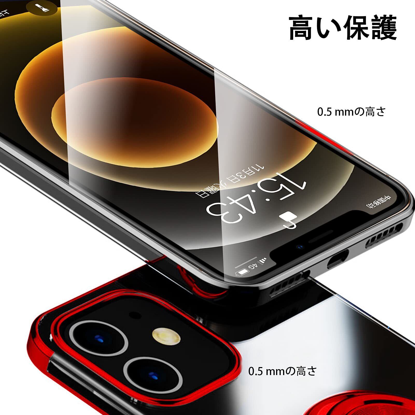 iPhone XS Max 用 ケース リング クリア 透明 TPU メッキ 加工 耐衝撃 車載ホルダー対応 スタンド機能 防塵 薄型 軽量 落下防止 一体型 変形防止 全面保護カバー アイフォン 用 ケース 赤 MJJ-SJ-1052-5-02