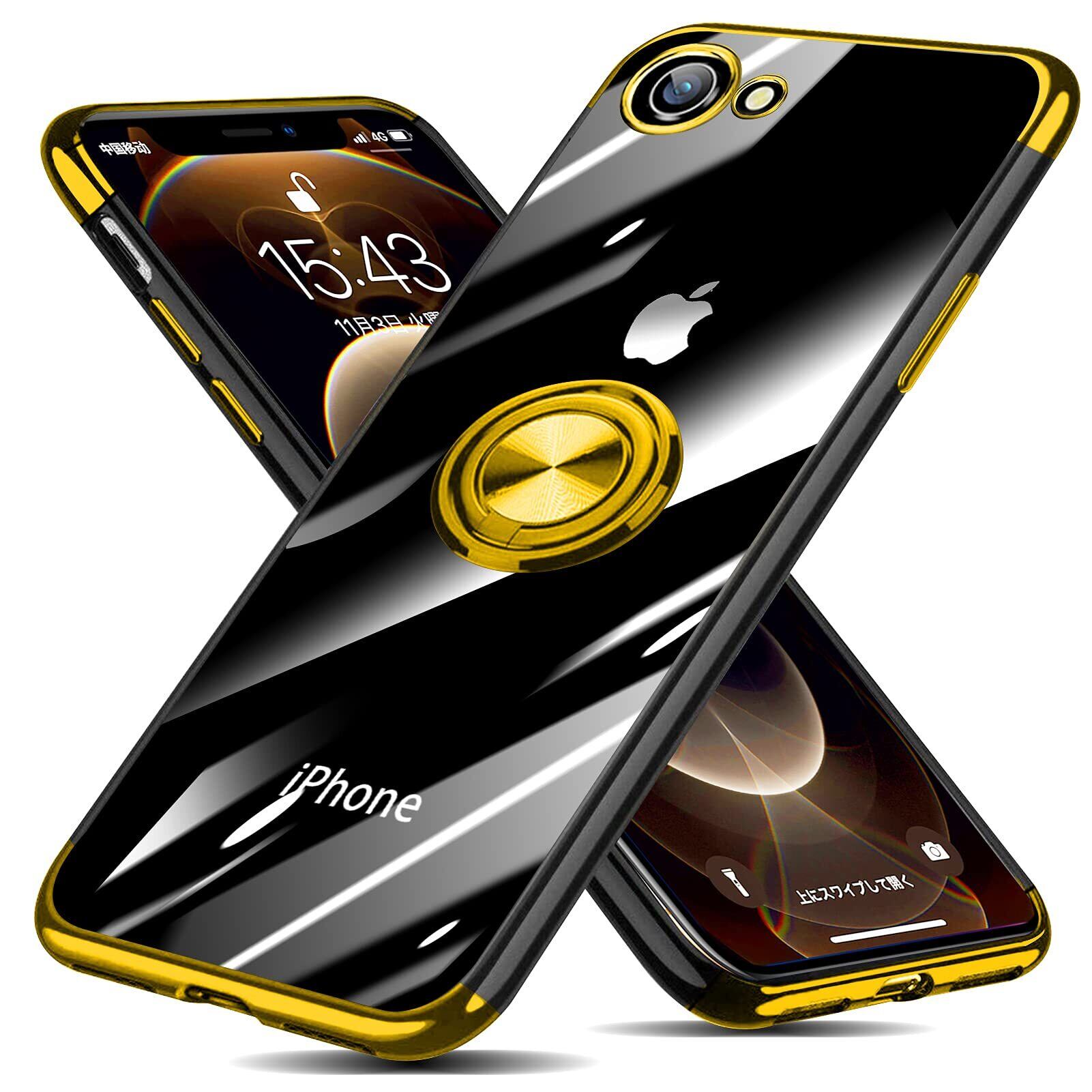 iPhone SE3 第3世代 用 ケース iPhone SE2 第2世代 用 ケース iPhone 7 用 ケース iPhone 8 用 ケース リング クリア 透明 TPU メッキ 加工 耐衝撃 車載ホルダー対応 スタンド機能 防塵 薄型 軽量 落下防止 一体型 変形防止 全面保護カバー アイフォン SE3/SE2/7/8 用 ケース 金 MJJ-SJ-1052-1-03