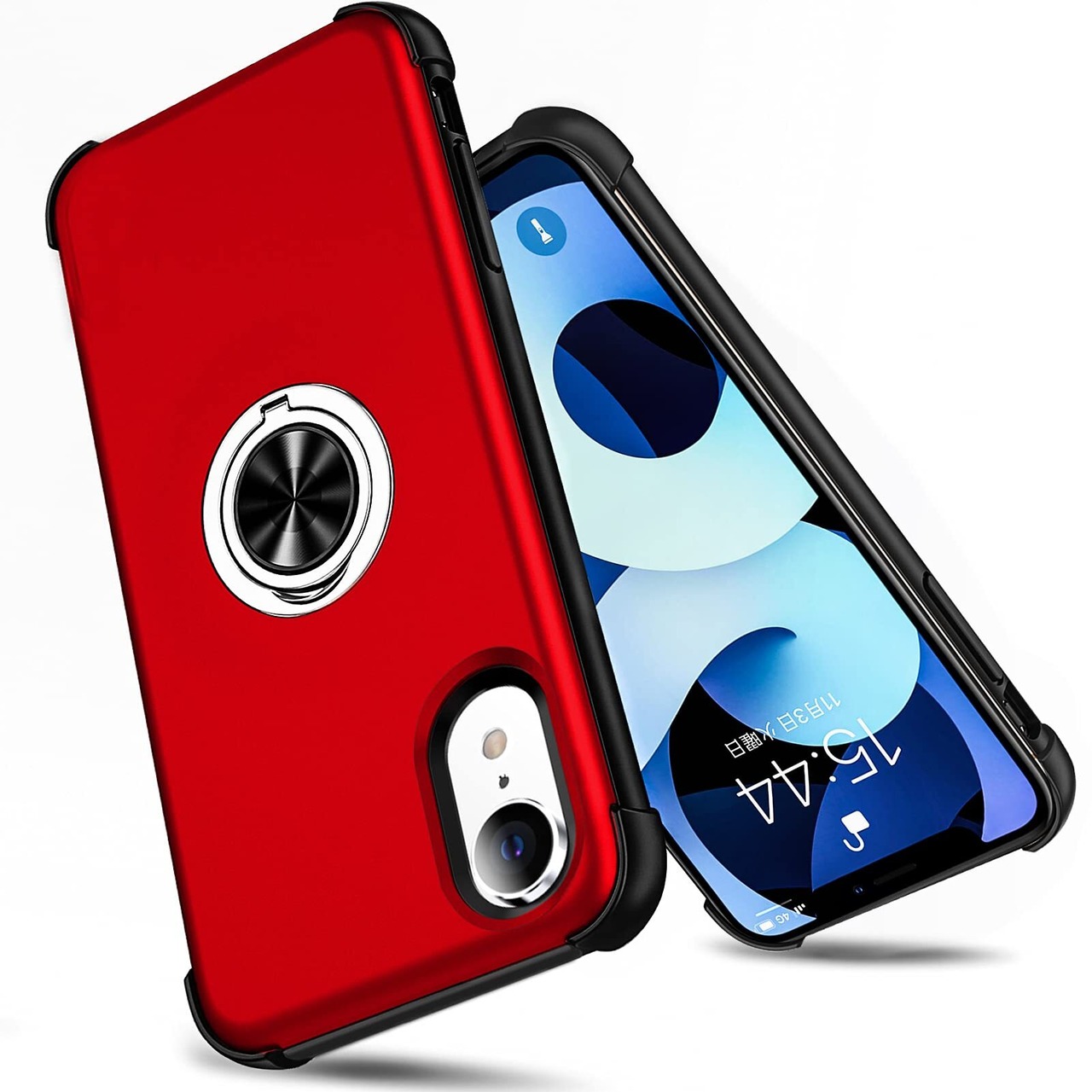 iPhone XR 用 ケース リング付き 耐衝撃 スタンド機能 シリコン アイフォン 8 Plus /7 Plus 用 カバー リング TPU 車載ホルダー対応 落下防止 防塵 薄型 軽量 一体型 変形防止 全面保護カバー アイフォン 用 携帯ケース 赤 W-YS360-15-02