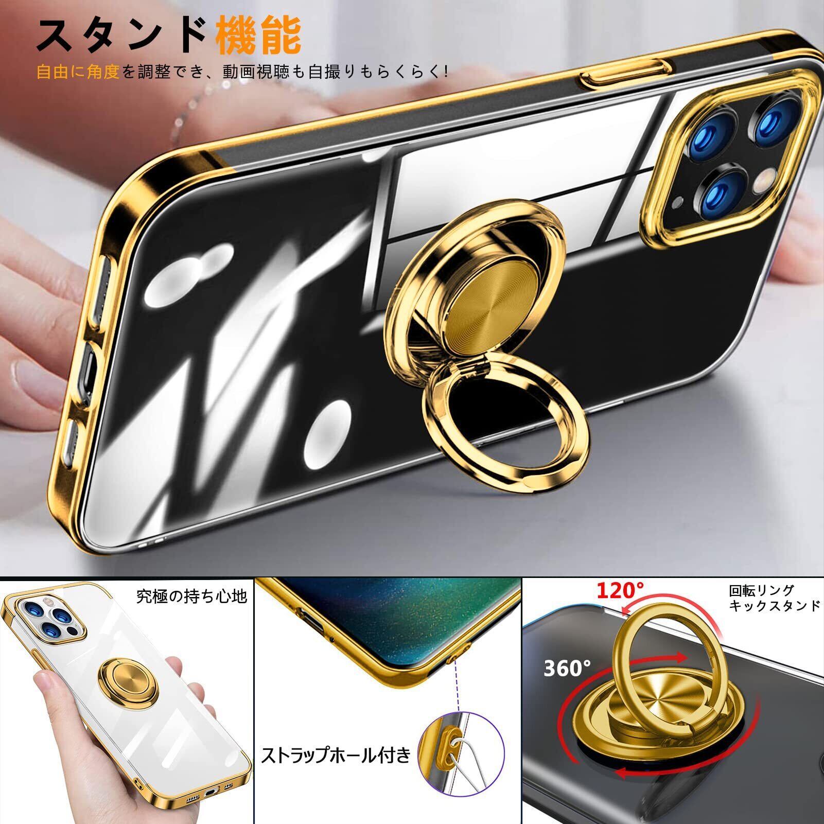 iPhone 13 Mini 用 ケース リング付き クリア 透明 TPU 耐衝撃 車載ホルダー対応 スタンド機能 防塵 薄型 軽量 落下防止 一体型 変形防止 全面保護カバー アイフォン 13 Mini 用 ケース 金 MJJ-1039-15-3